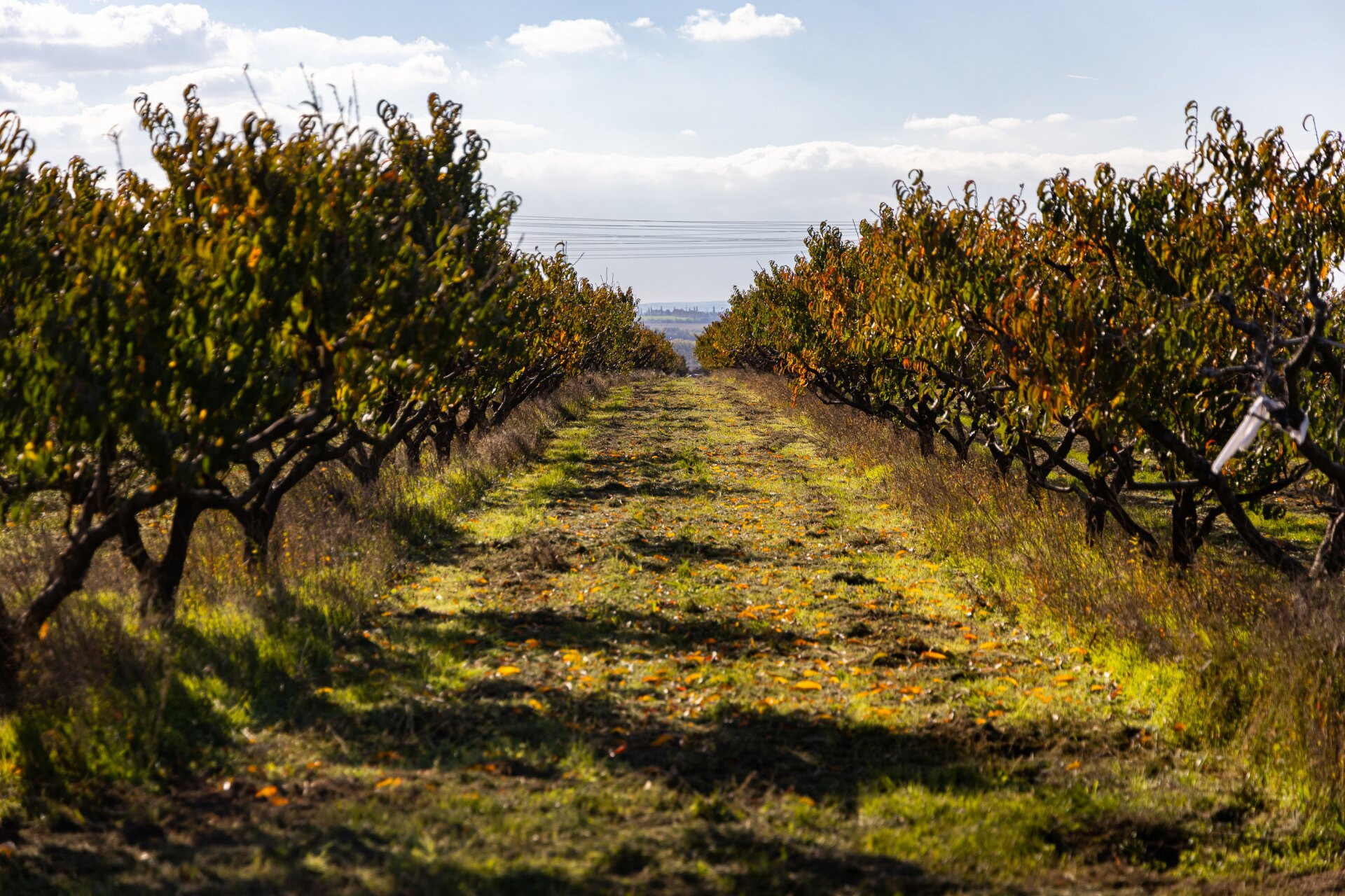 Az Ercsi útról a temető felé kanyarodva folytattuk az utat a hullámvonallal kijelölt ösvényen, ahol most gyümölcsösök mellett vezetett az utunk, távolban az elmaradhatatlan battai látképpel.