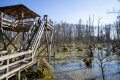 A tanösvény útvonala szinte végig a víz fölötti pallósoron vezet