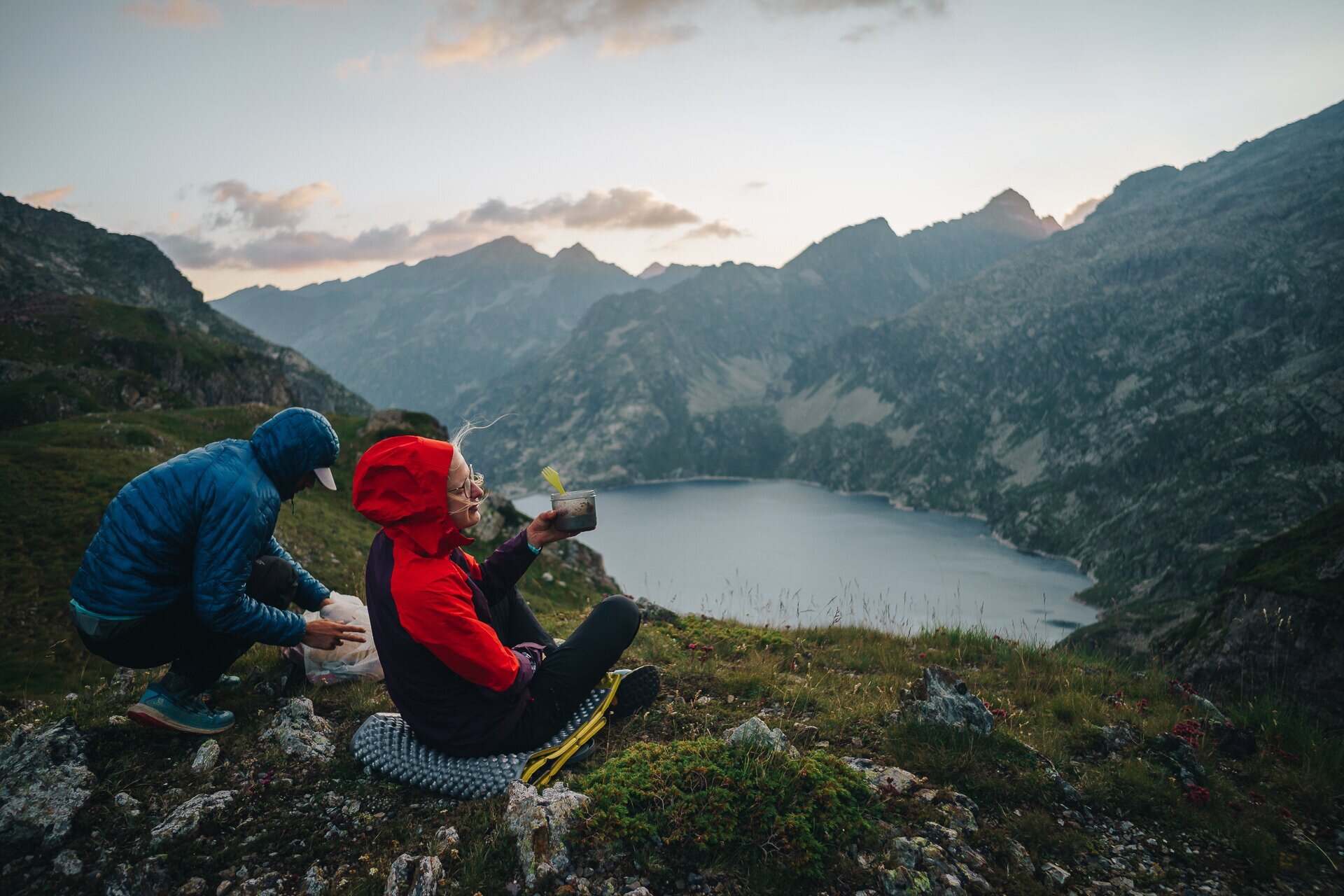 Reggeli a Col de Arrious hágón, háttérben a Lac d'Artouste tengerszem