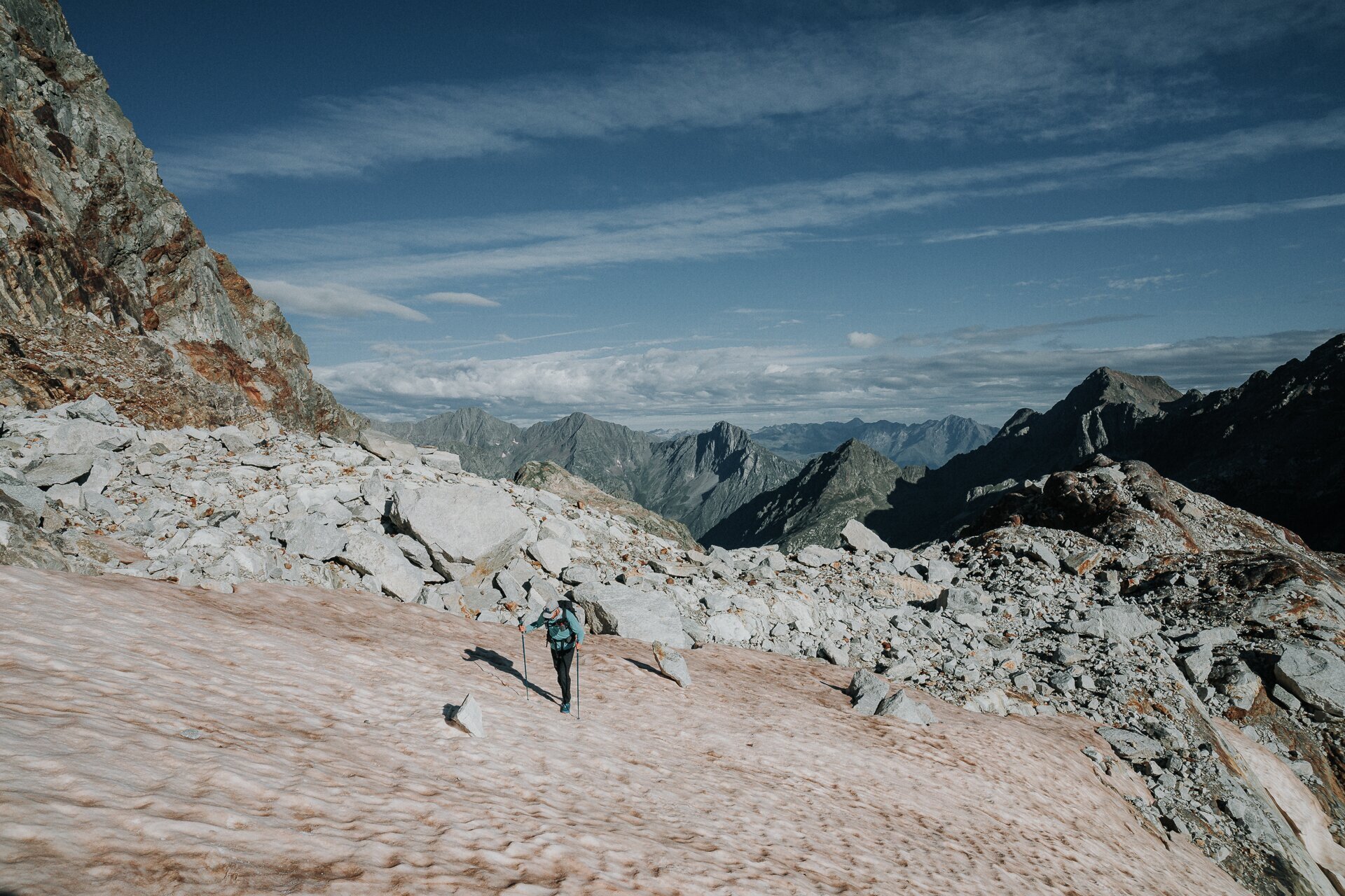 Koncentrált lépkedés a Col des Gourgs Blancs hágón (2876 m)