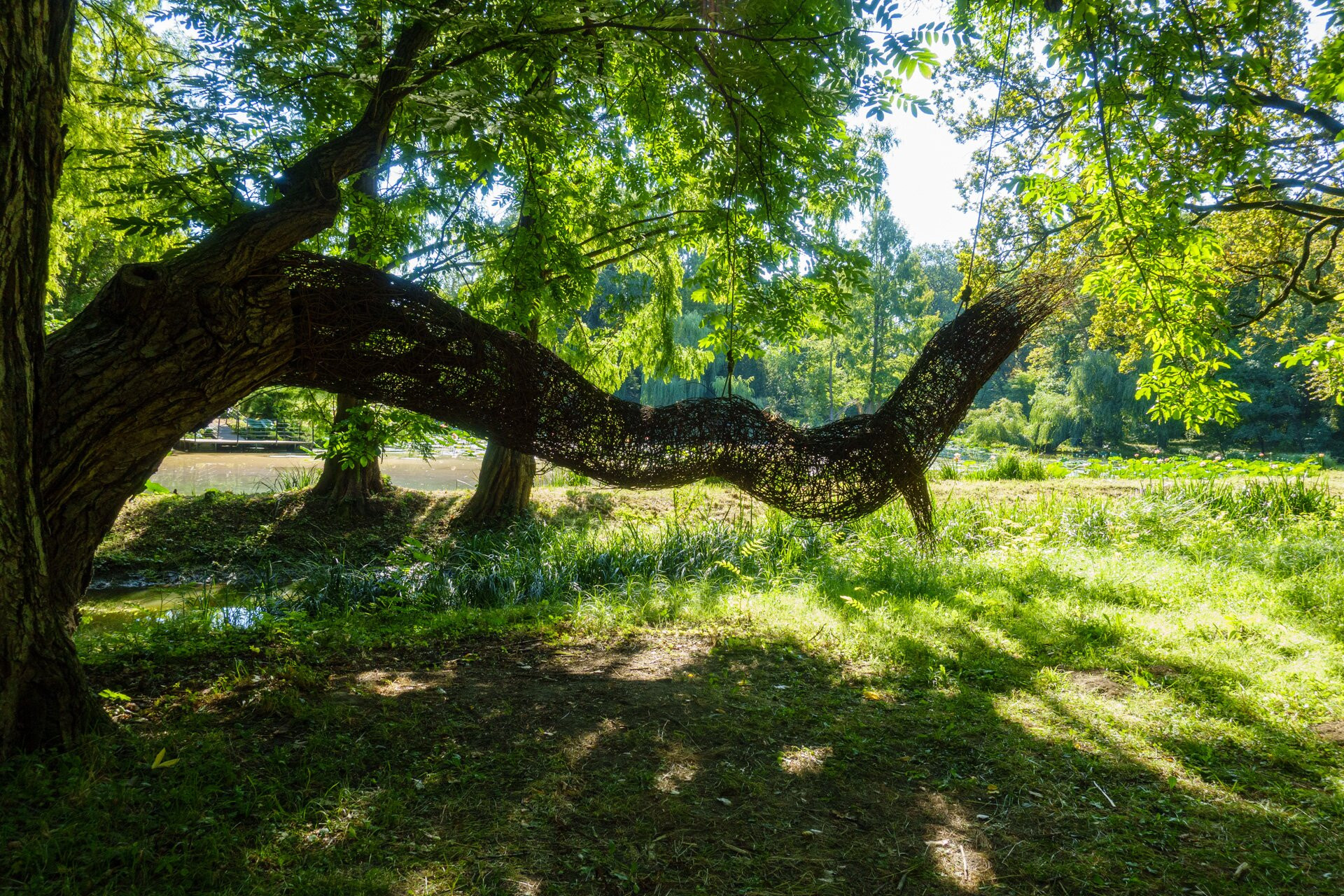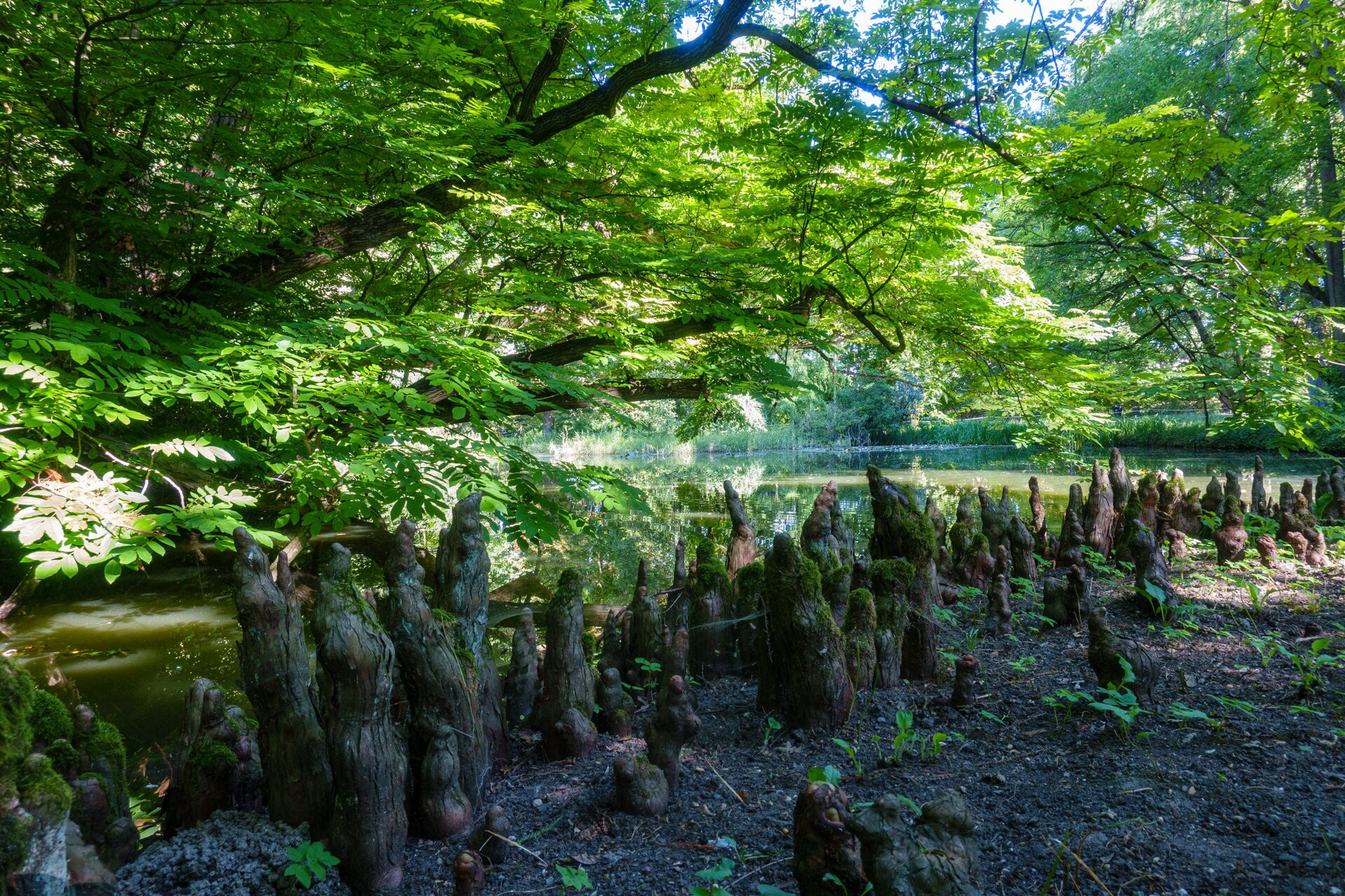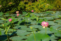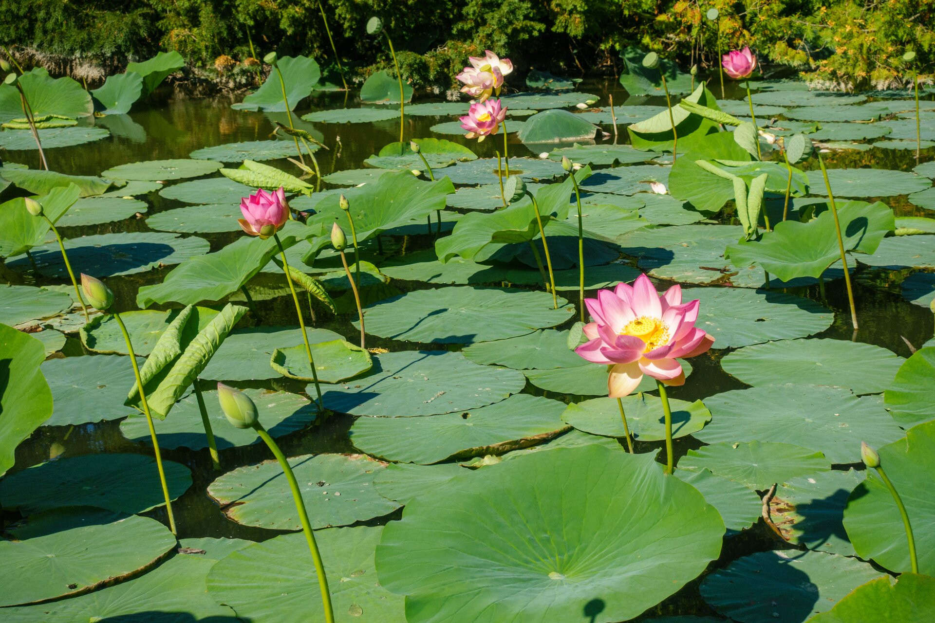 A kert központi helyén található Nagy-tó vízfelszínét szinte teljesen beborítják az indiai lótuszok
