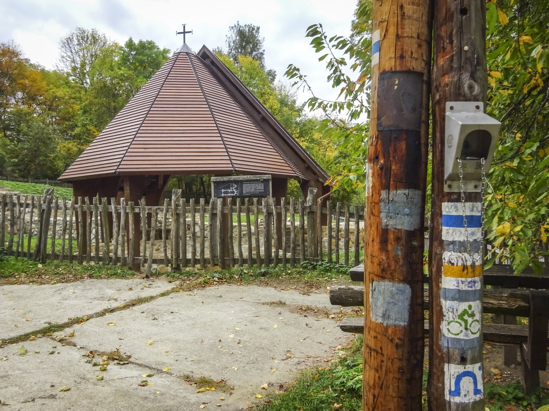 Itt a templomromnál találjuk az Országos Kéktúra egyik bélyegzőjét is, de a Tölgyfa büfénél is találunk egyet