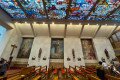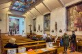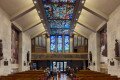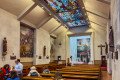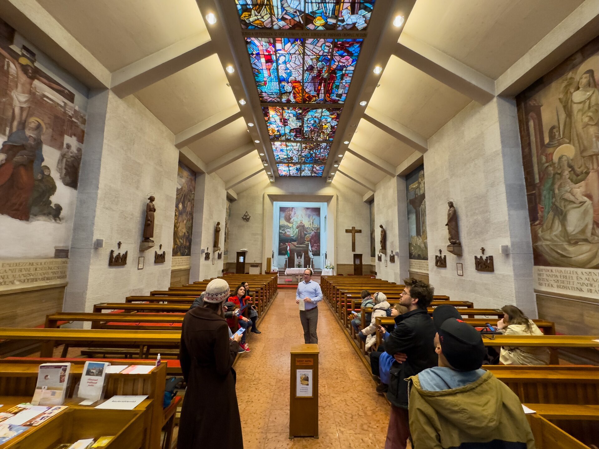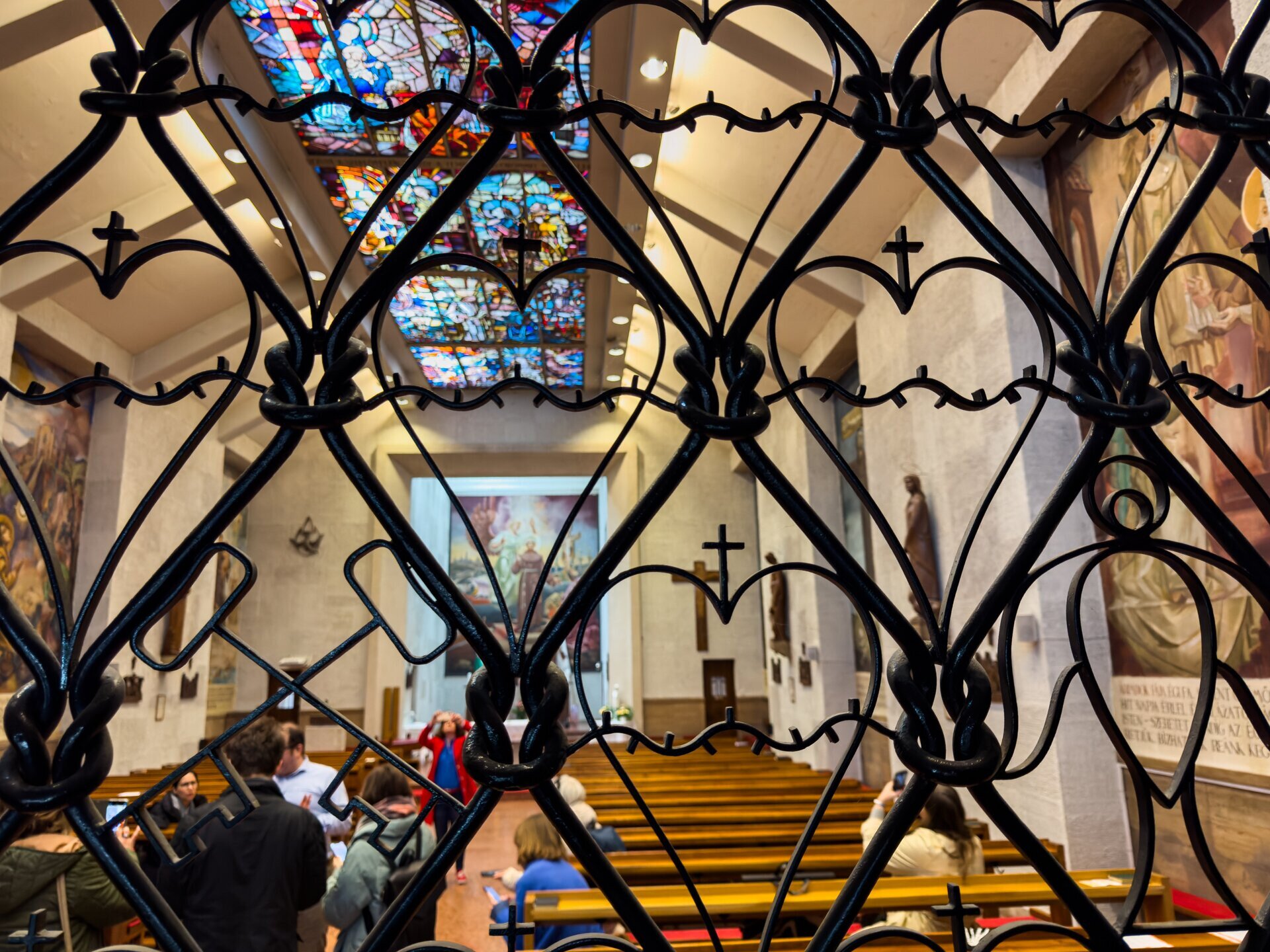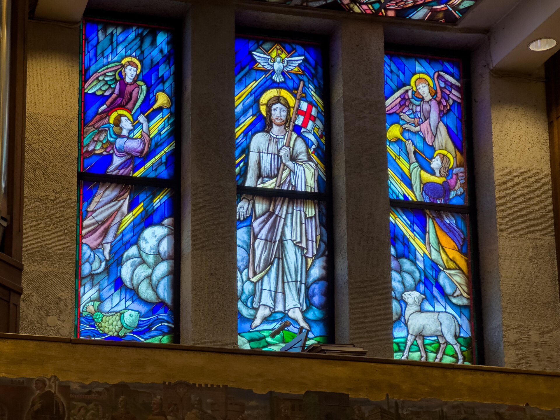 Az épület különlegessége, hogy nincsenek ablakai, a fény a felülvilágítón és a festett mennyezeti üvegen át árad a liturgikus térbe