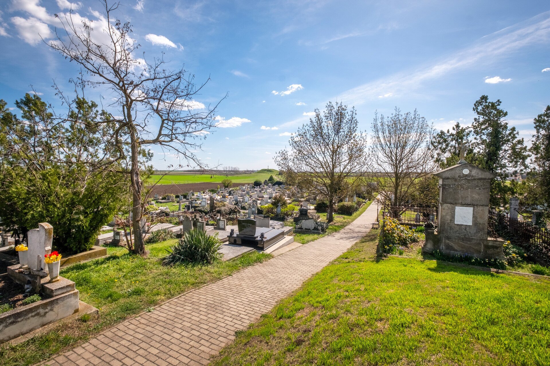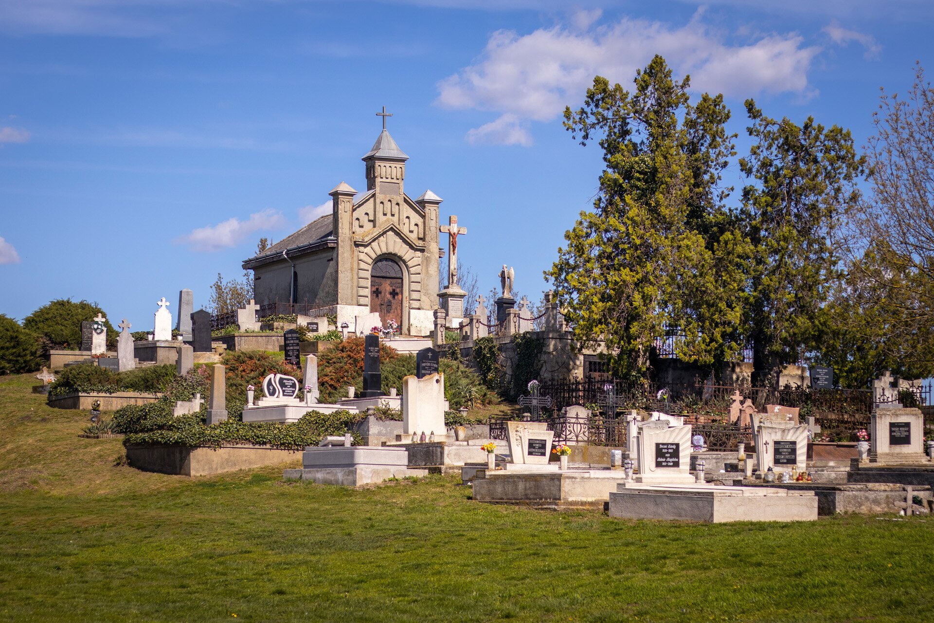 A temetőhöz érkezve az ember tekintete egyből a domb tetején álló kripta épületén akad meg