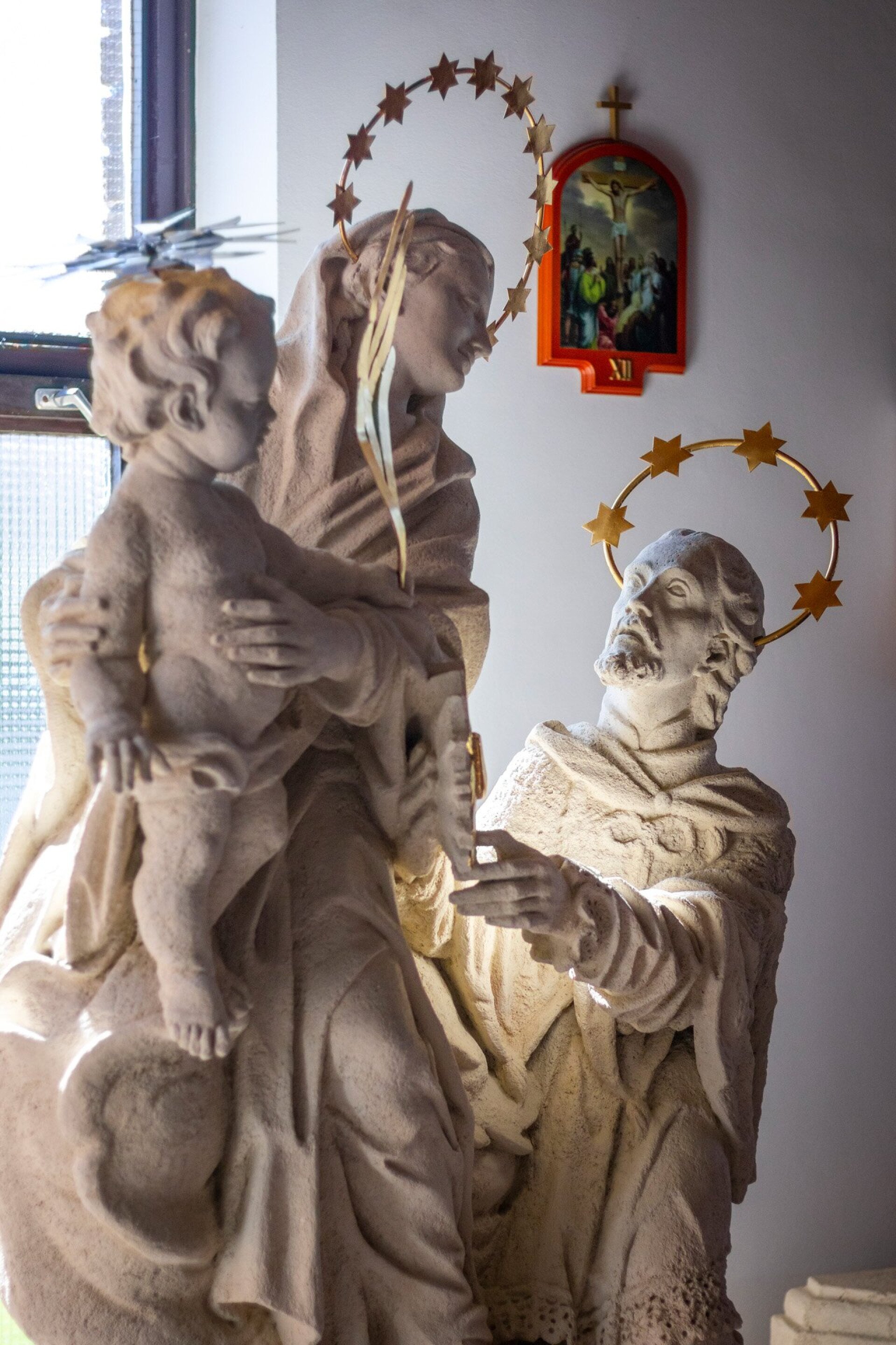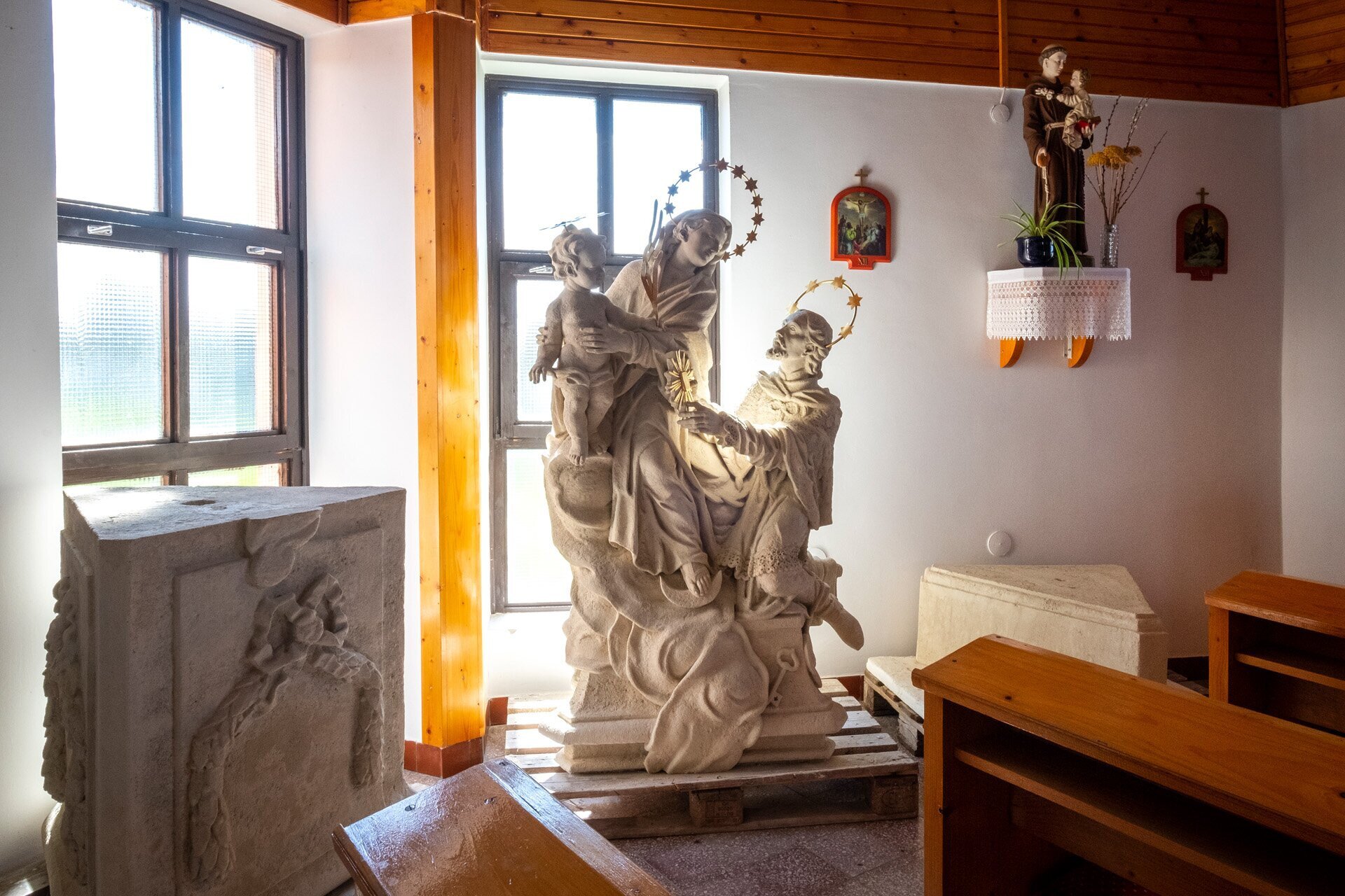 A Nepomuki-szobor a Szapárfalui Szűz Mária Keresztények Segítsége kápolna védő falai között kapott helyet