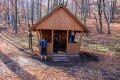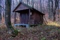 Az erdőmélyi bivak kunyhók egyike