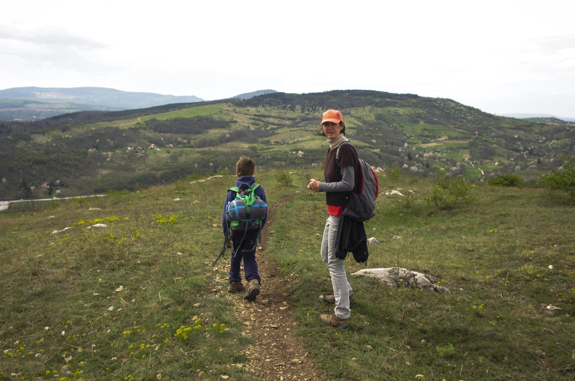 Bálint a család kéktúrán megismert, újdonsült barátjával– Évával –a tokodi pincék felé tart