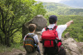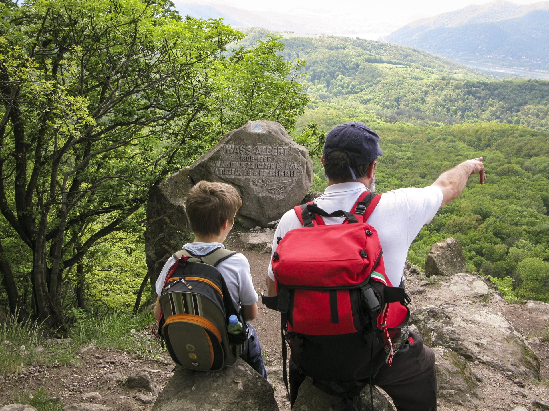 A Moli-pihenőtől tartunk Visegrád felé, közben egy kis tájban gyönyörködés a Borjú-fő sziklacsúcsán, a Wass Albert- emlékműnél