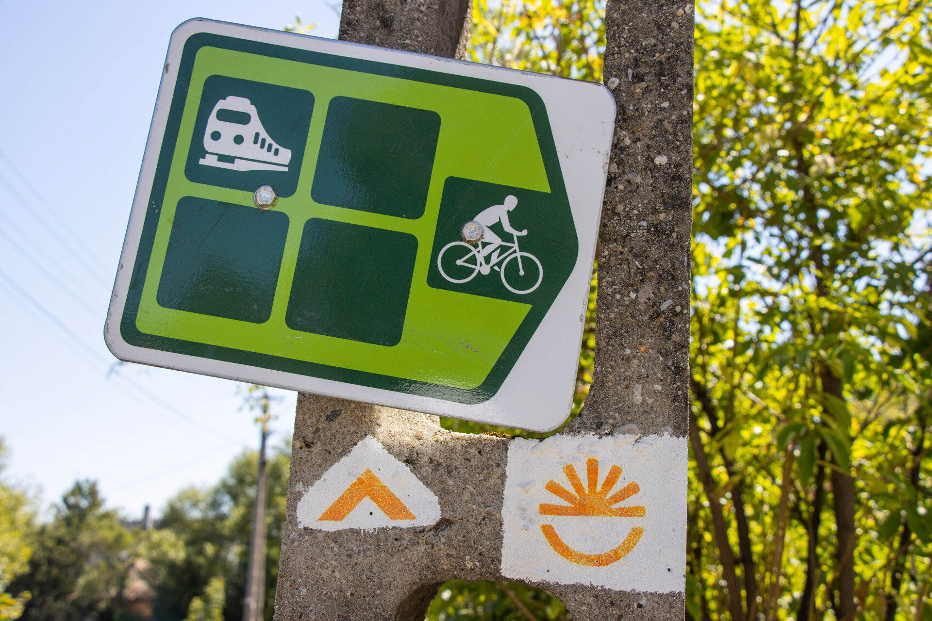 A túra jele narancssárga felkelő napot, esetleg küllőket vagy bukósisakot ábrázol