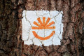 A túra jele narancssárga felkelő napot, esetleg küllőket vagy bukósisakot ábrázol