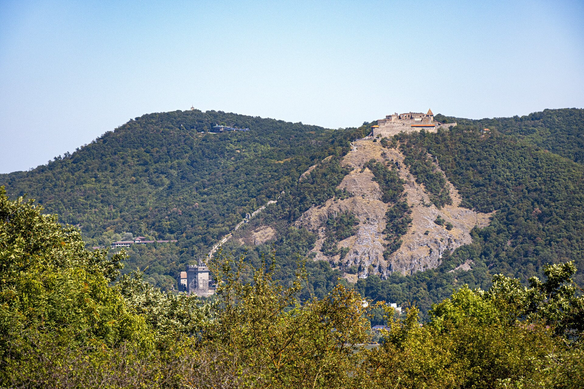 Kilátás Köves-mező pihenőjéről a Visegrádi várra