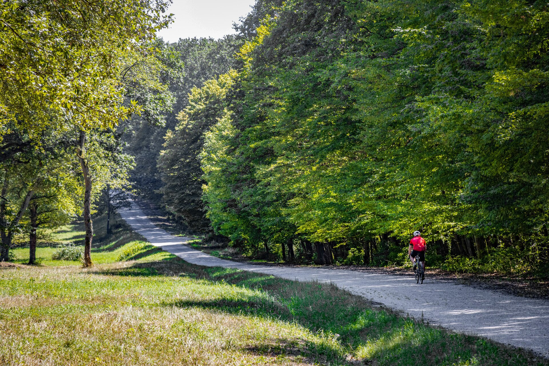 Köves-mező felé közúti forgalom elől elzárt erdészeti útonon tekerhetünk