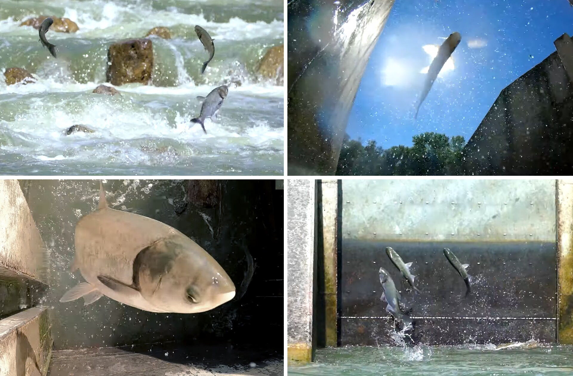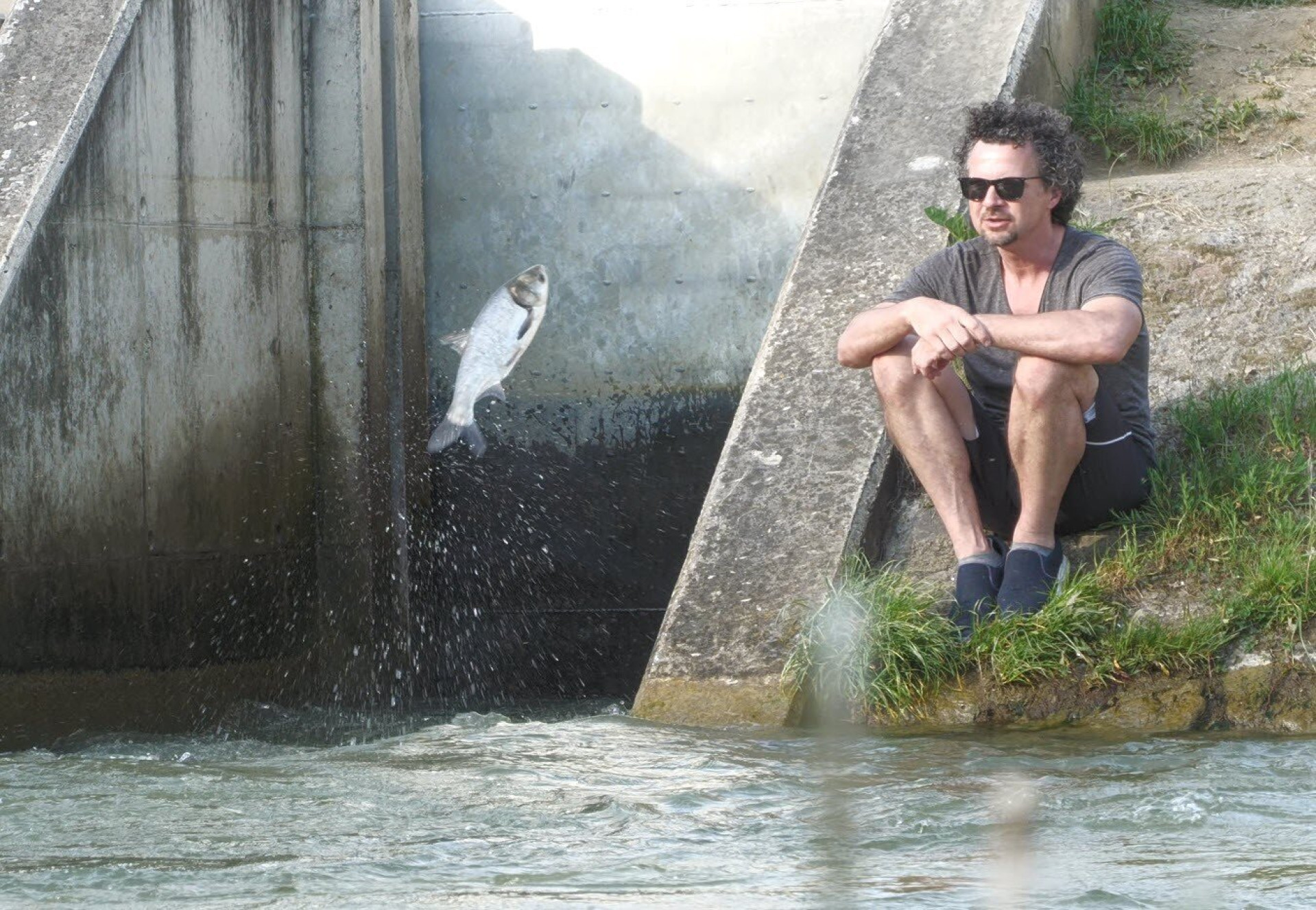 Hatalmasakat ugró busák a kiskörei hallépcsőnél (jelenetképek az készülő Tisza-tavi filmből)