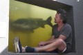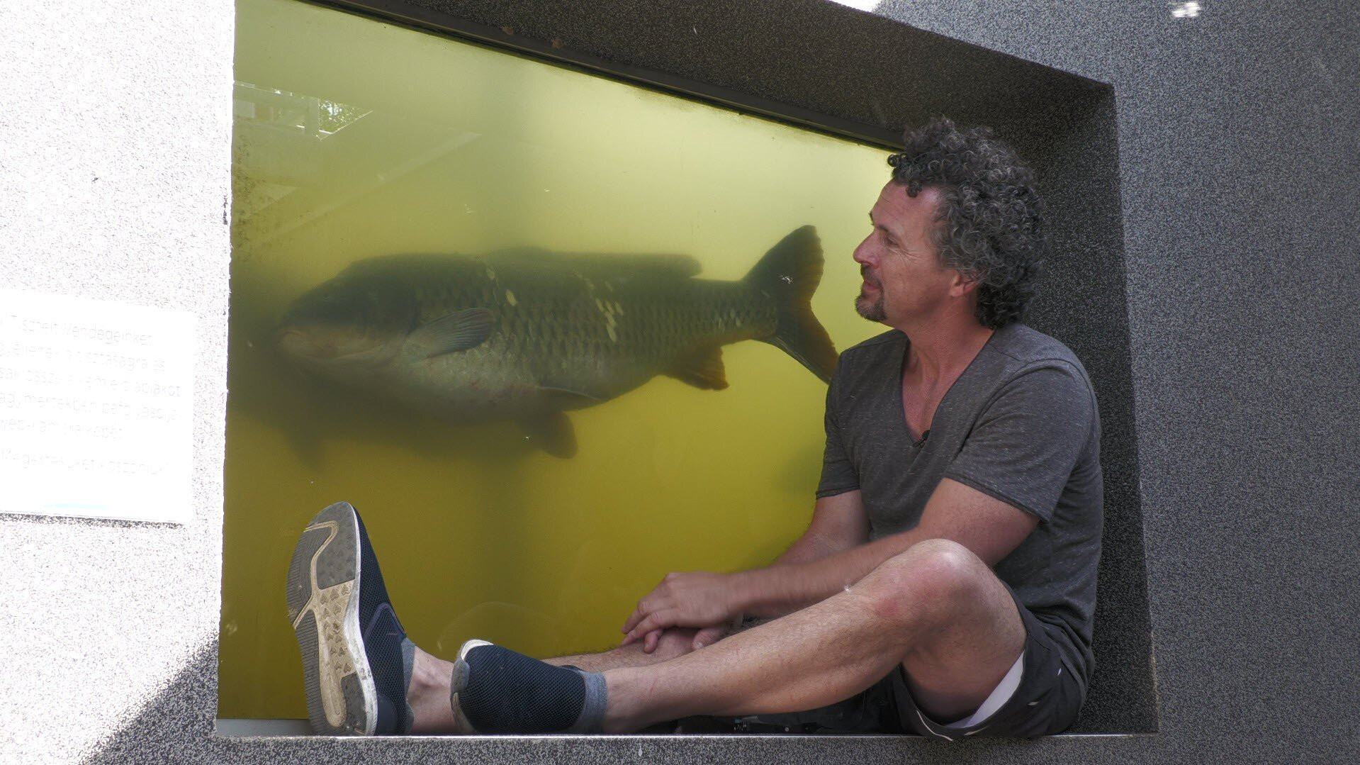 A kiskörei hallépcsőnél nagy ablakokon keresztül figyelhetjük meg a vonuló halakat. A ponty meglepően szívósan tud felfelé nyomulni, és még ezek a hatalmas példányok is feljutnak a Tisza-tóba, mint amilyet a képen látunk