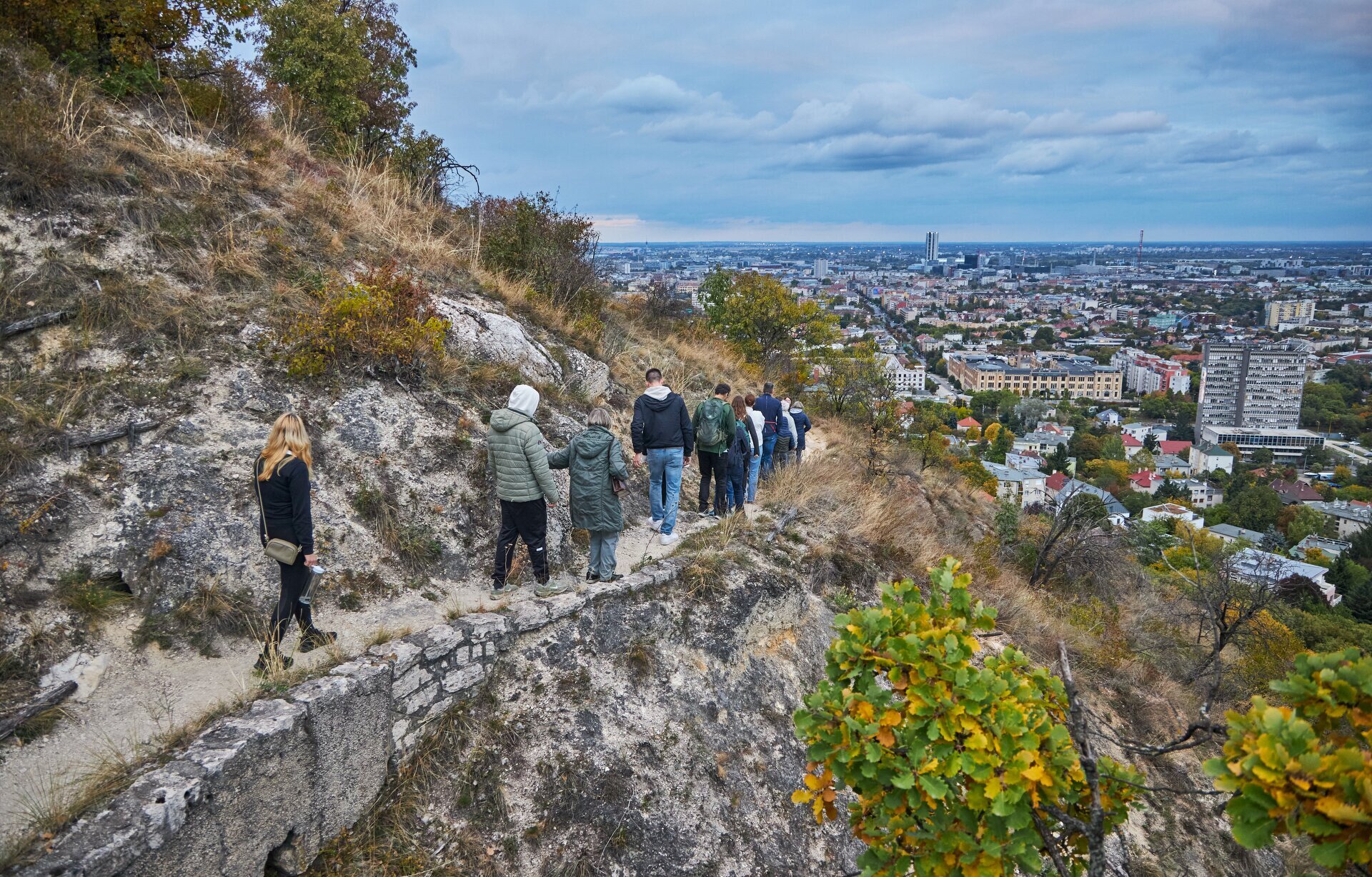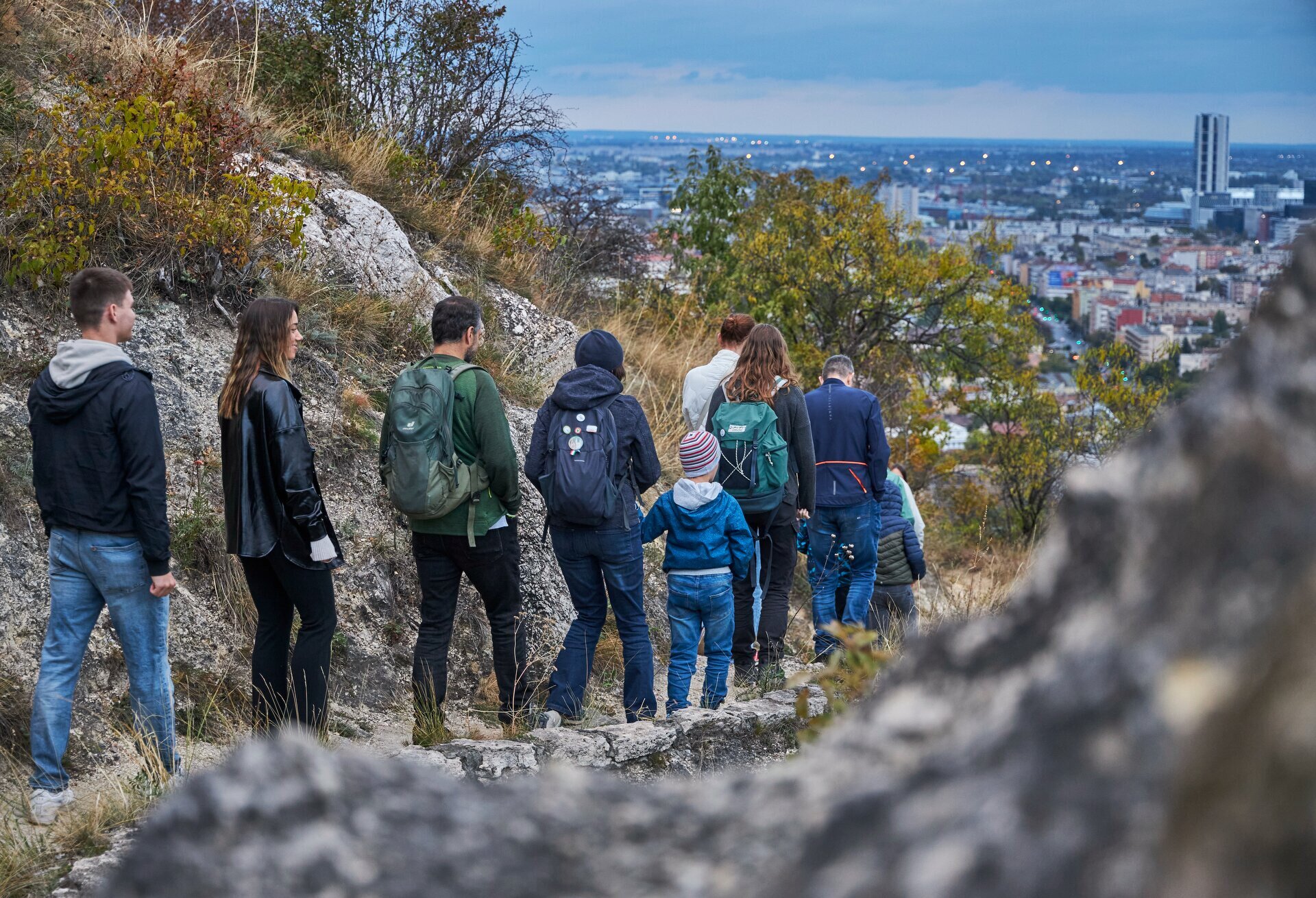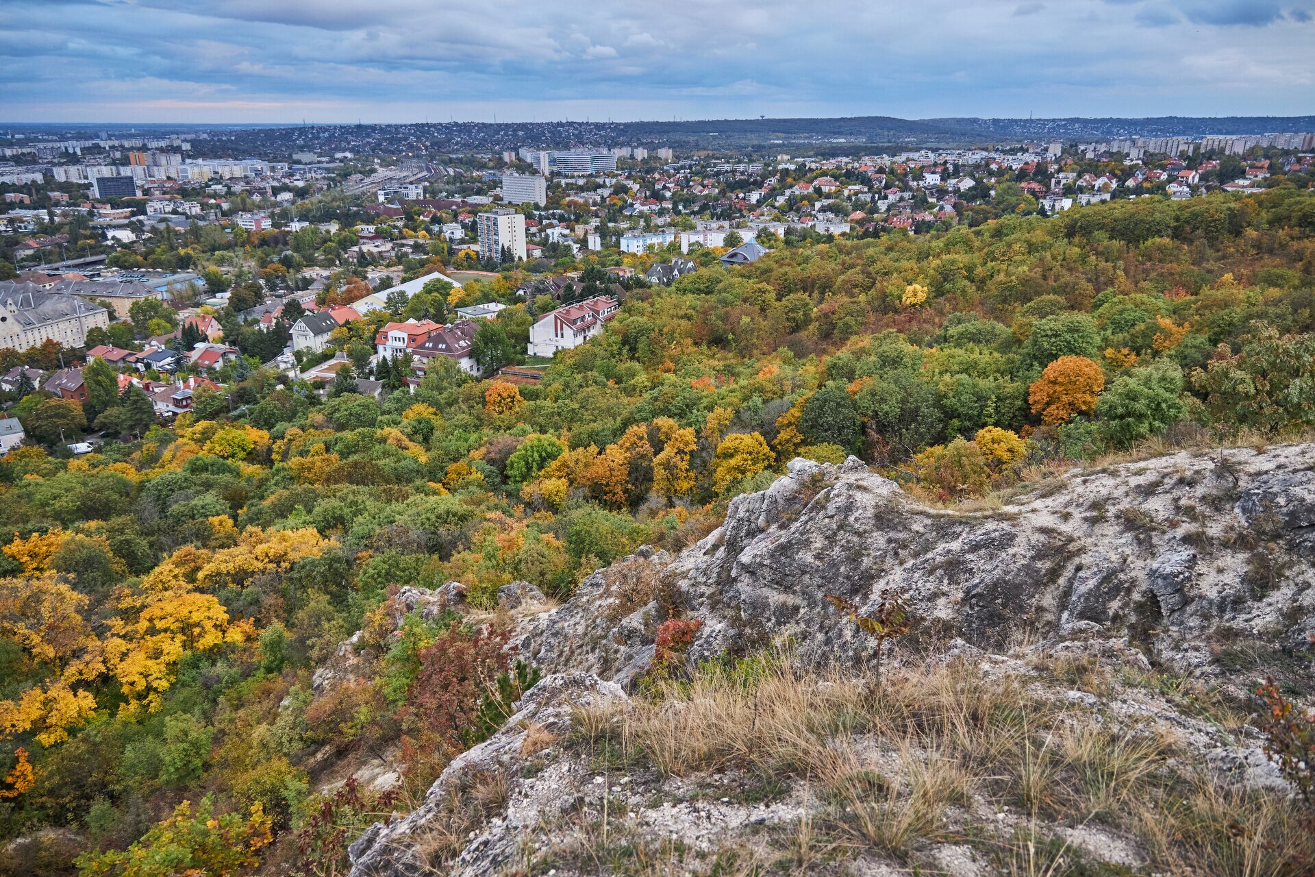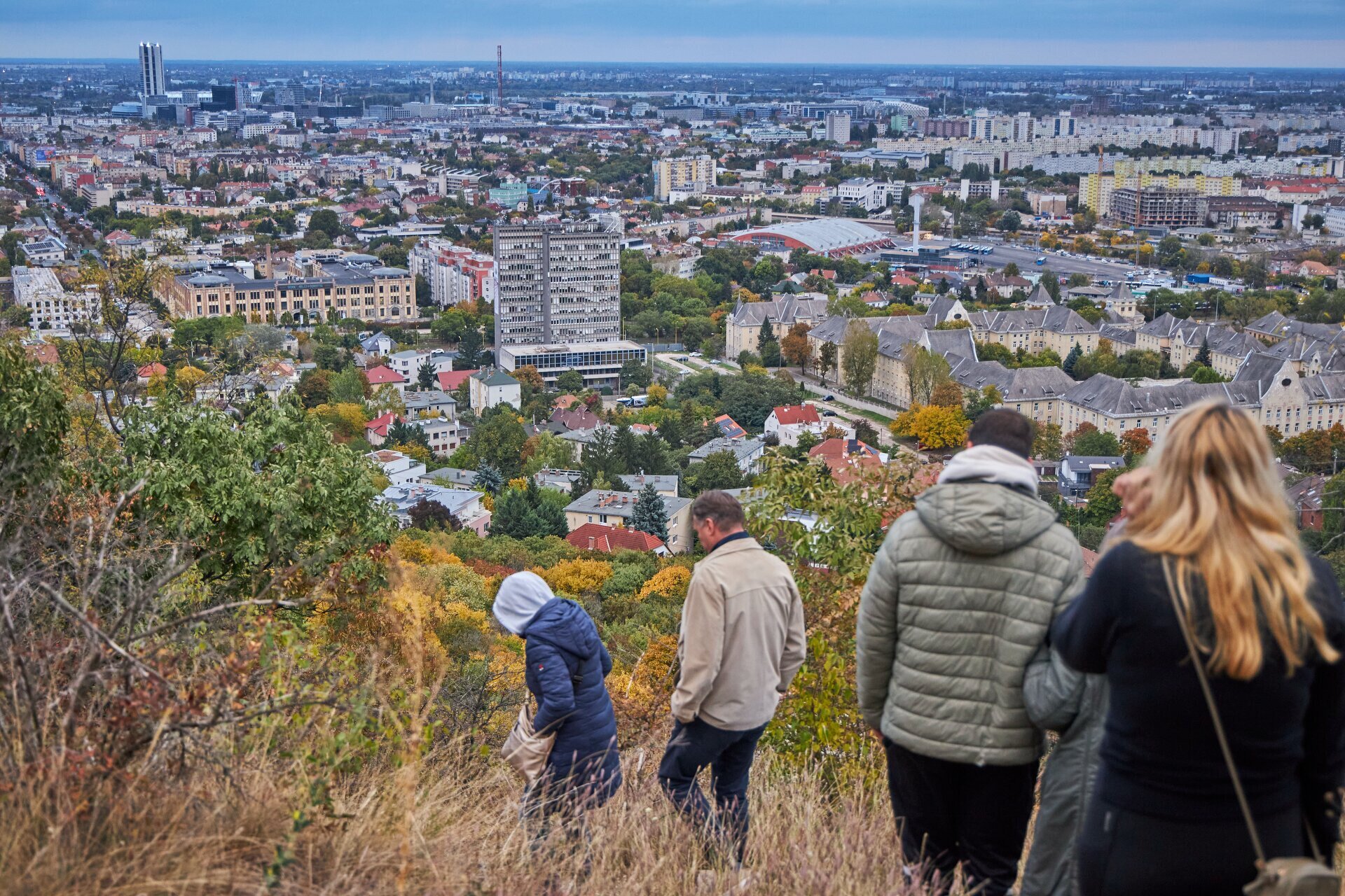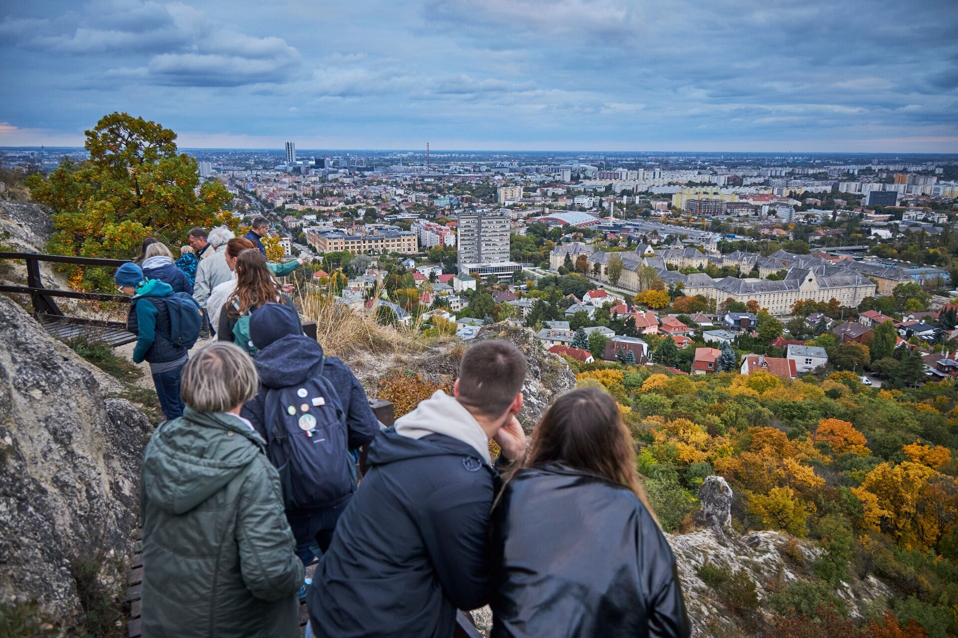 A kilátás a Sas-hegyi tanösvényről több mint pazar, a város szinte a lábunk előtt hever