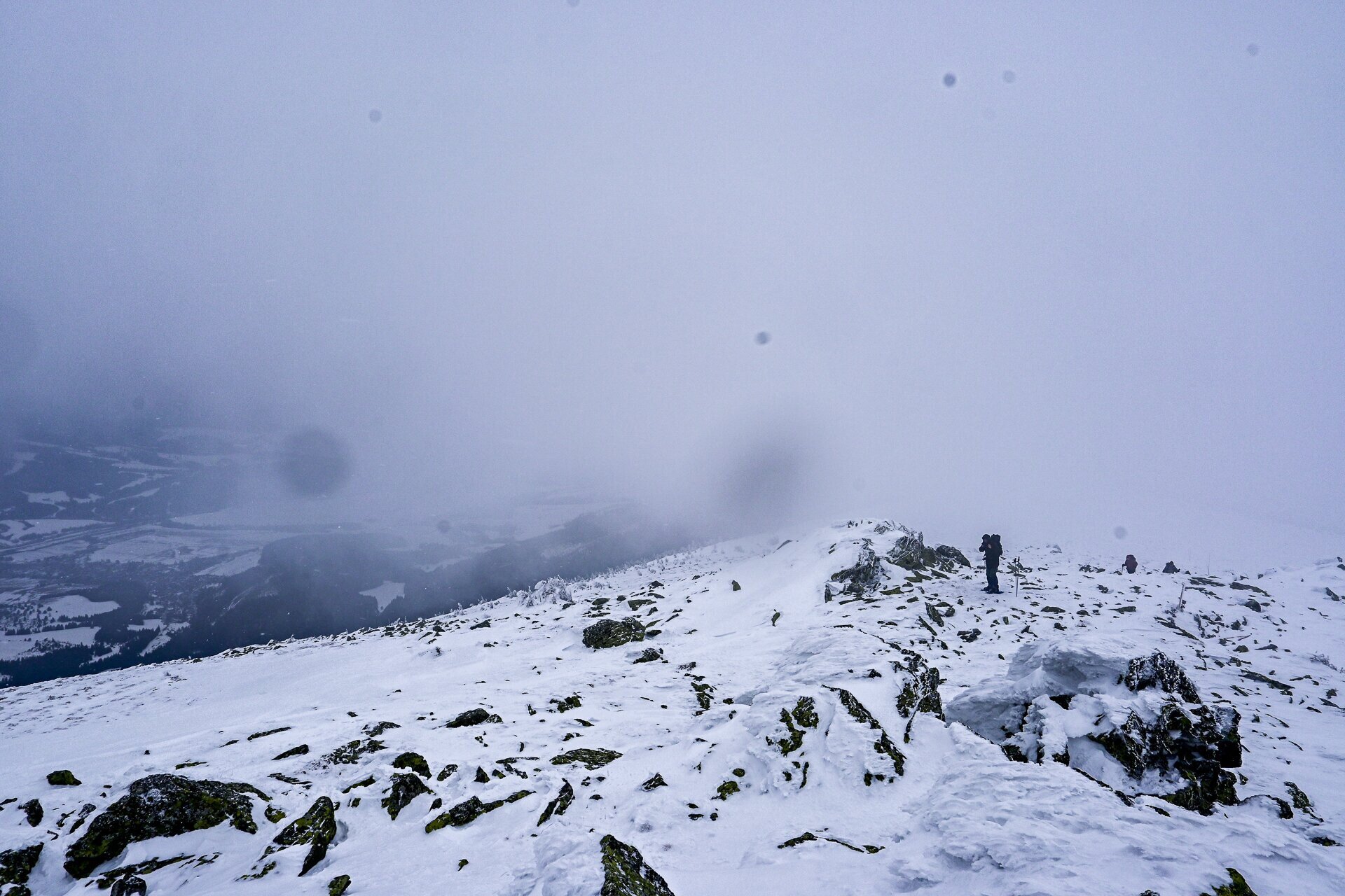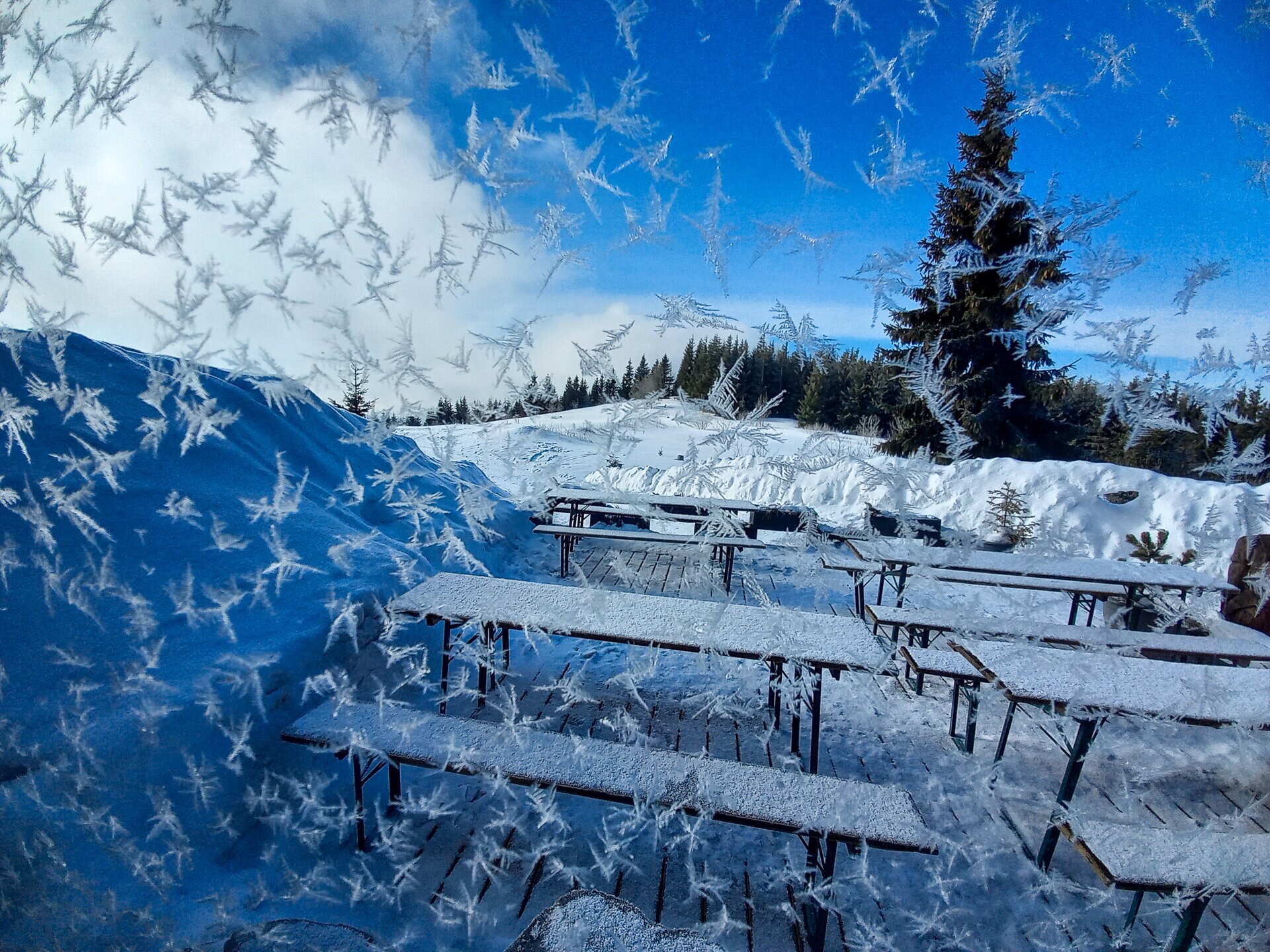 A csúcs melletti információs táblákat vastagon és látványosan beborította a zúzmara
