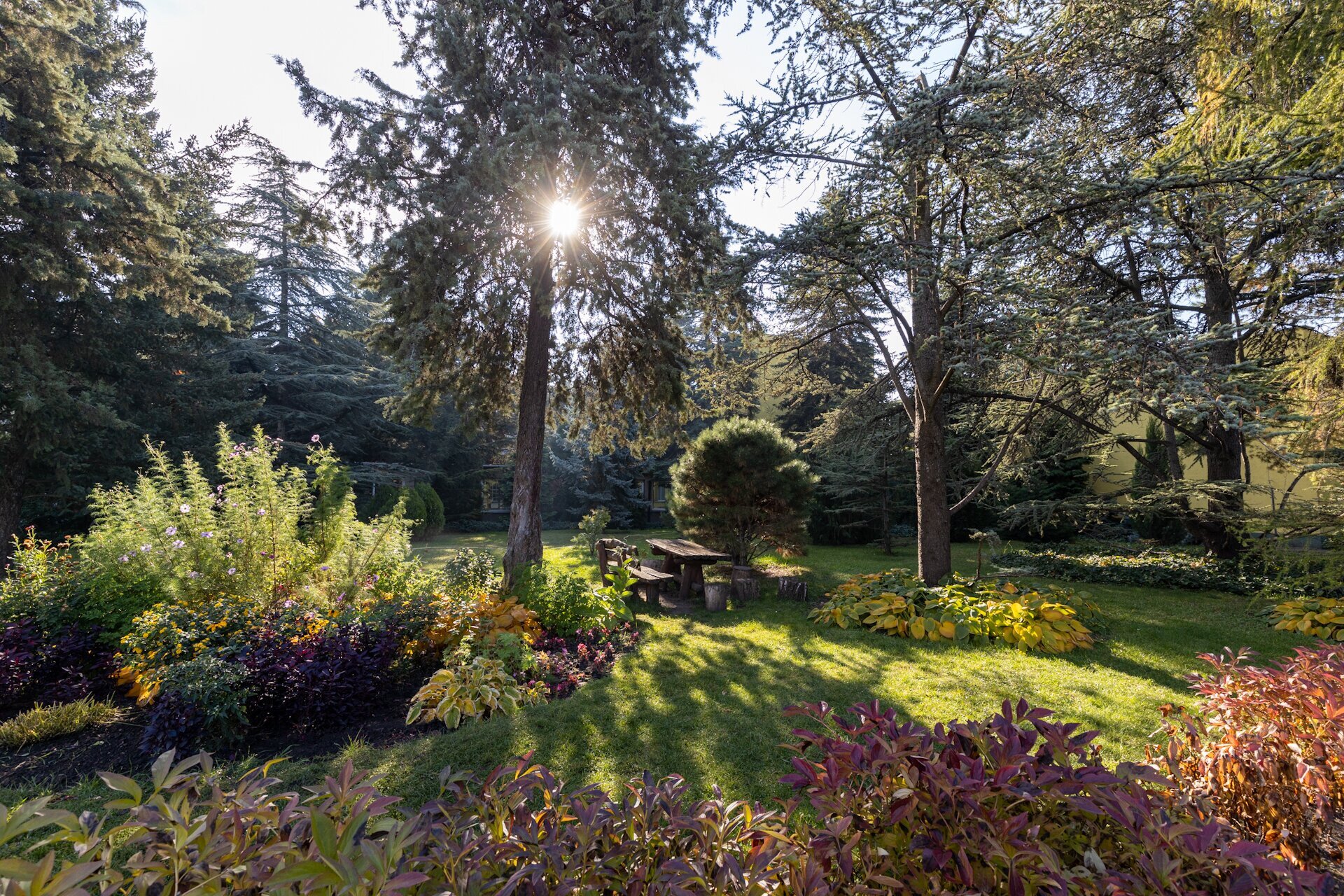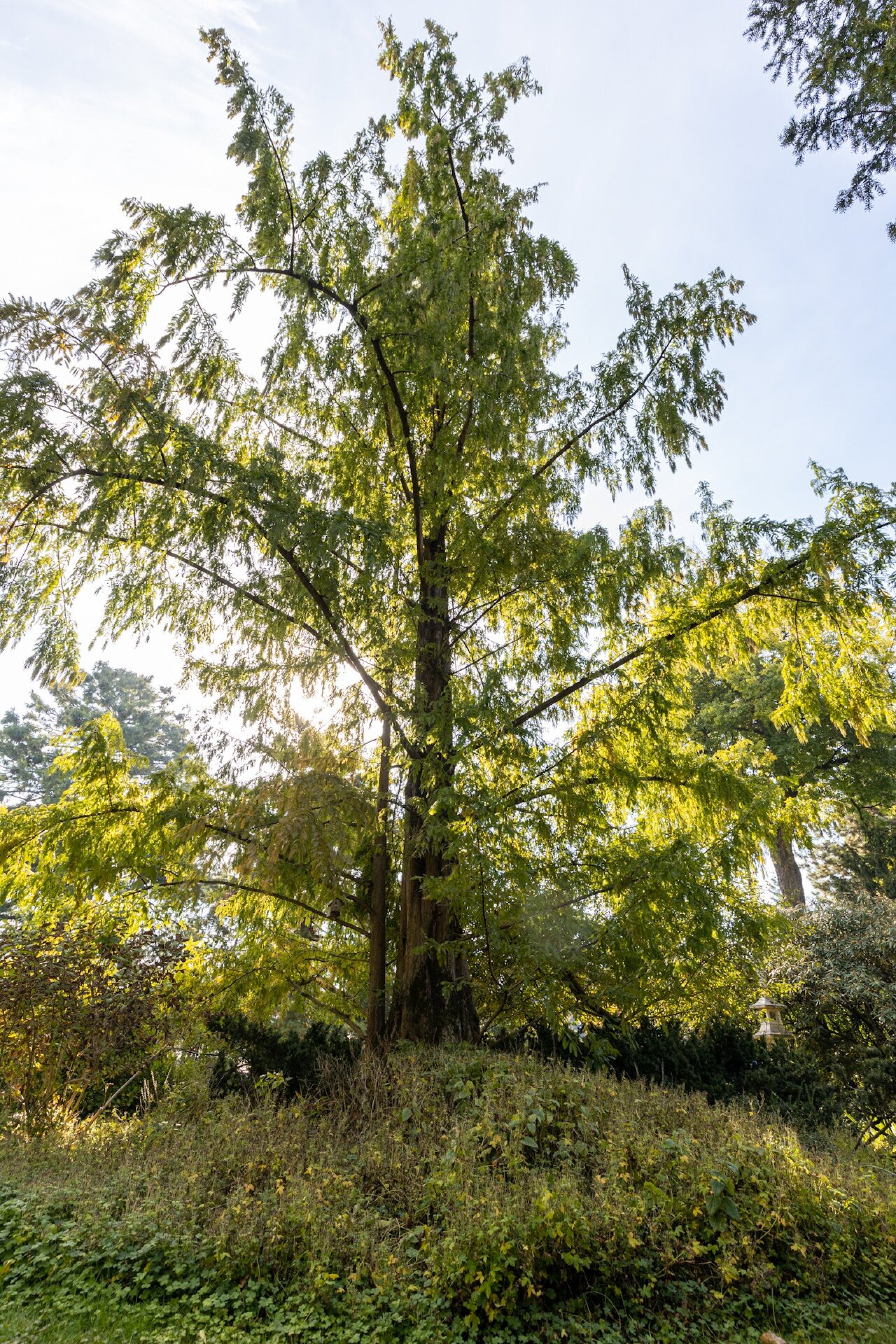 A kert egyik gyönyörű páfrányfenyője még éppen csak elkezdett sárgulni