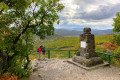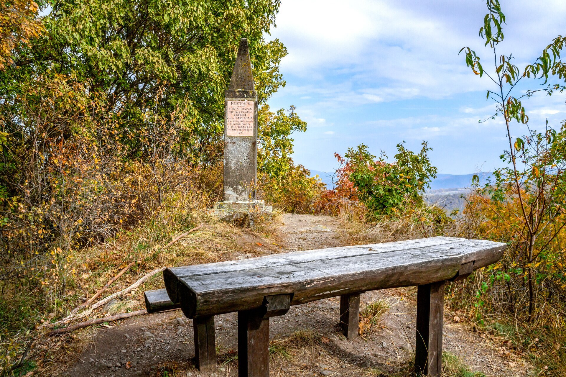 A bércen otromba kőoszlop áll, egy felszabadulási emlékmű maradványa