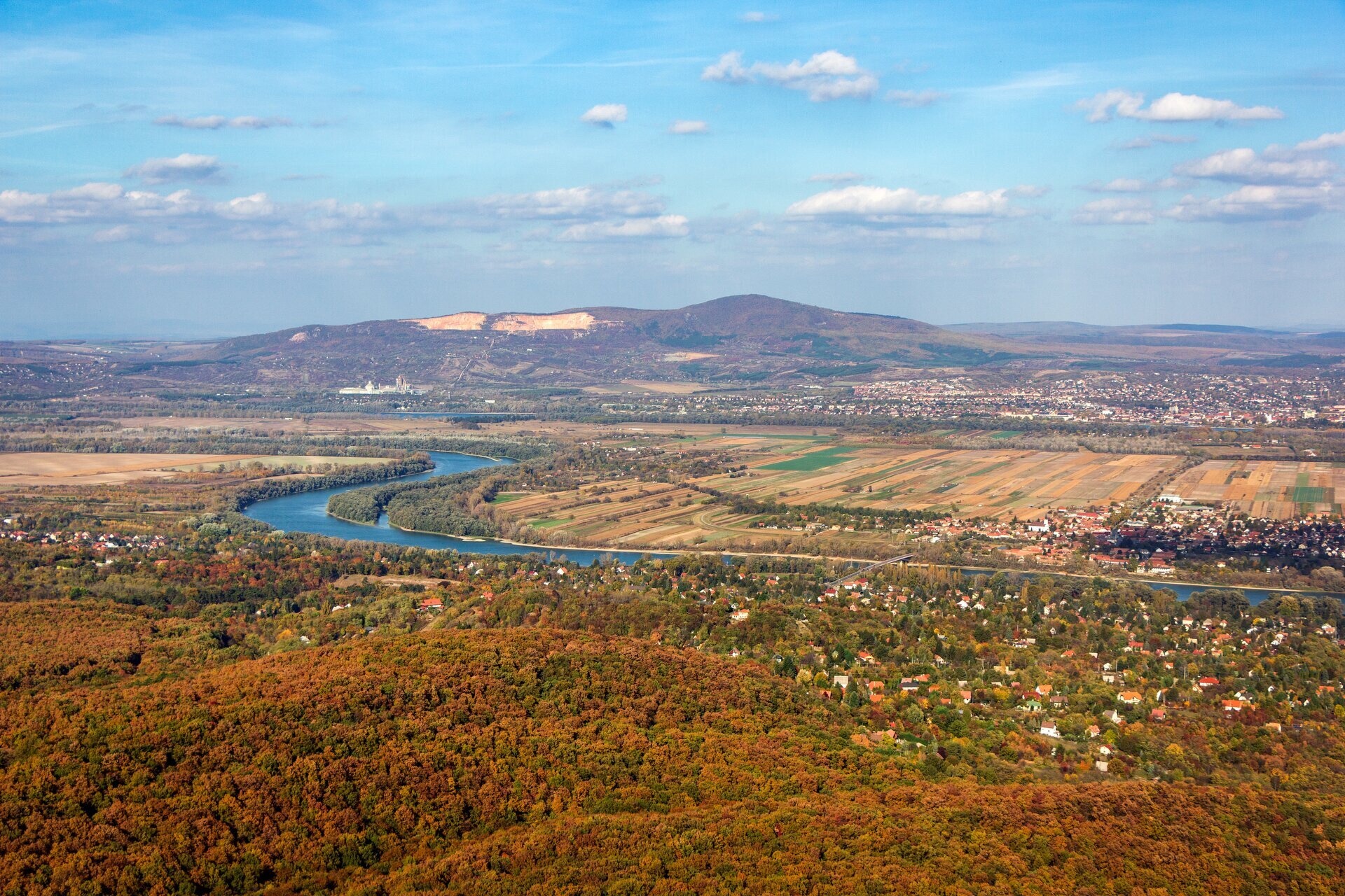 Vörös-kői kilátás a Dunával és a bányászat által megcsonkított Naszállyal