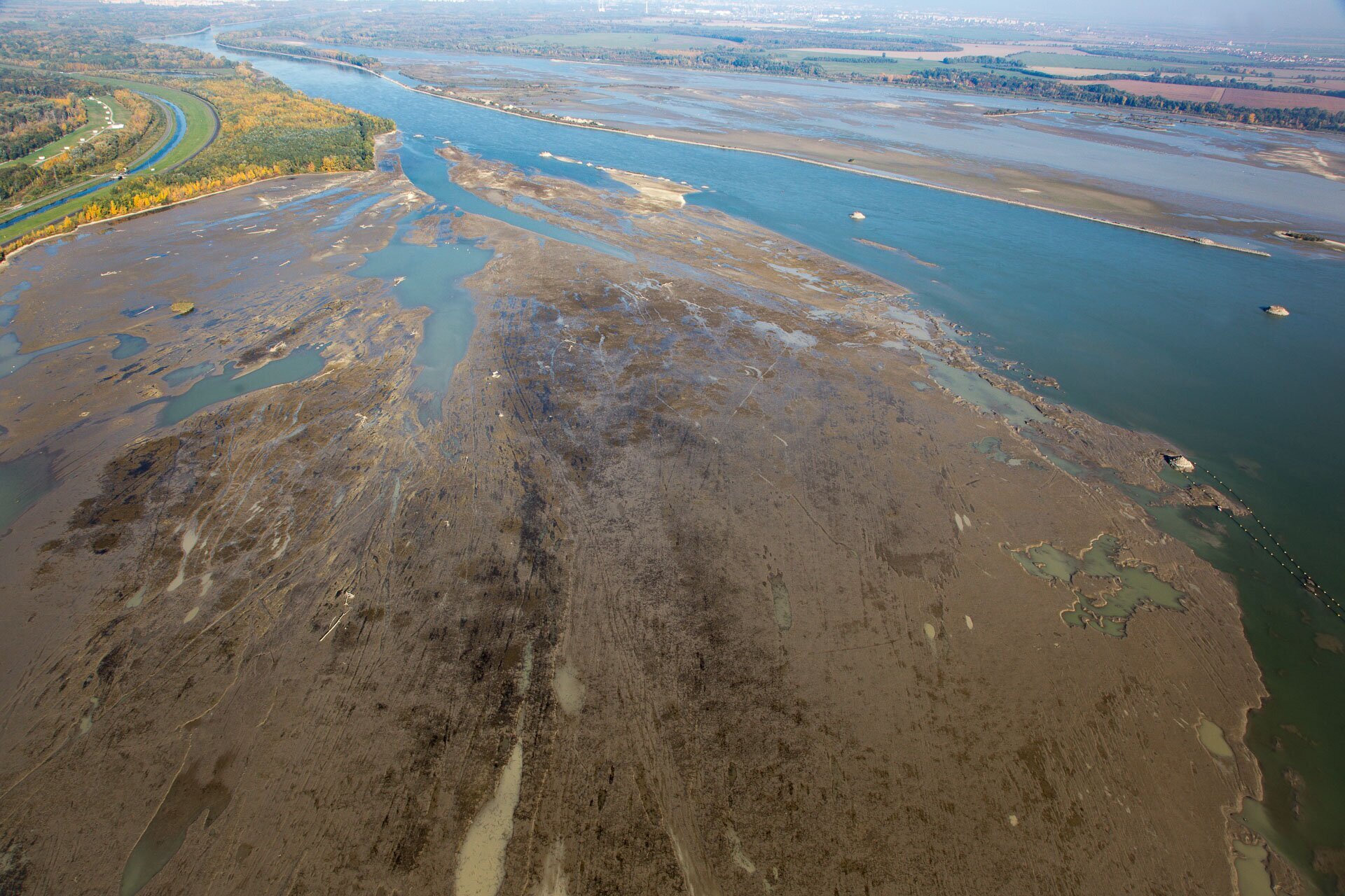 Hordalék Dunacsún zárógátjánál kisvíz idején