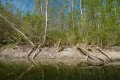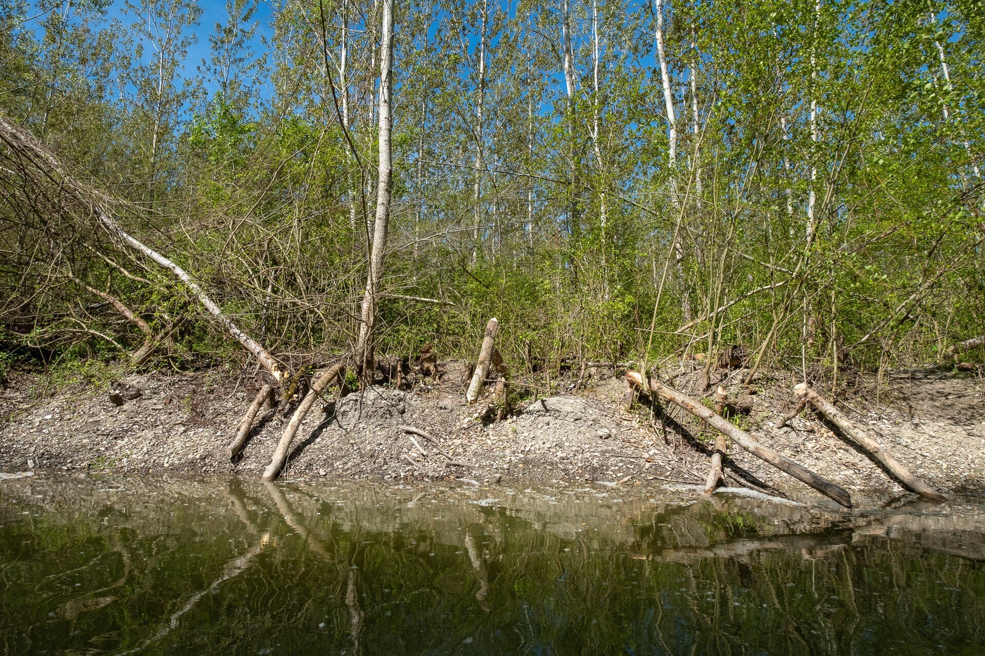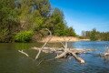 Vízbe borult, hód rágta fatörzsek a Madári-ágban