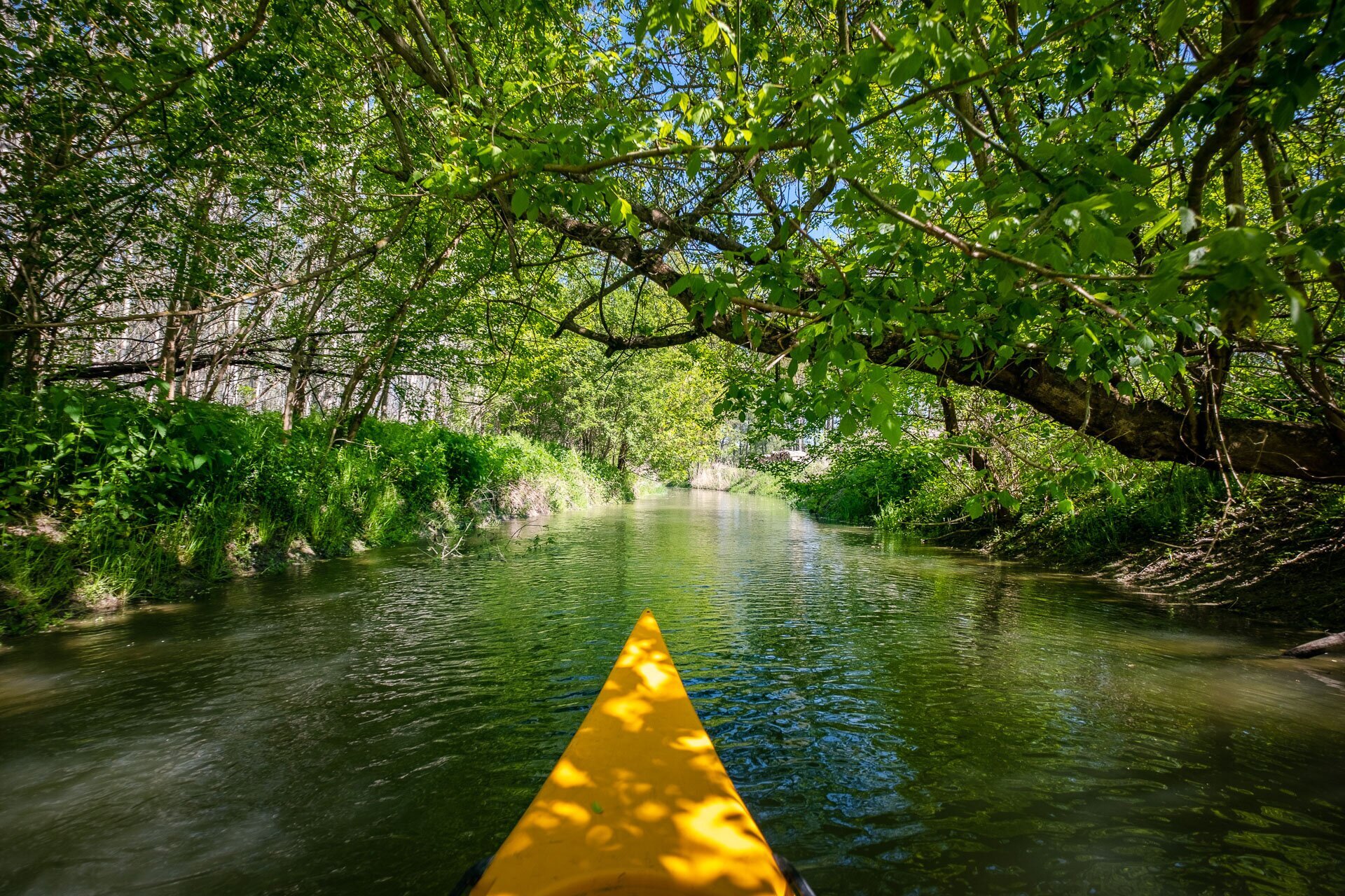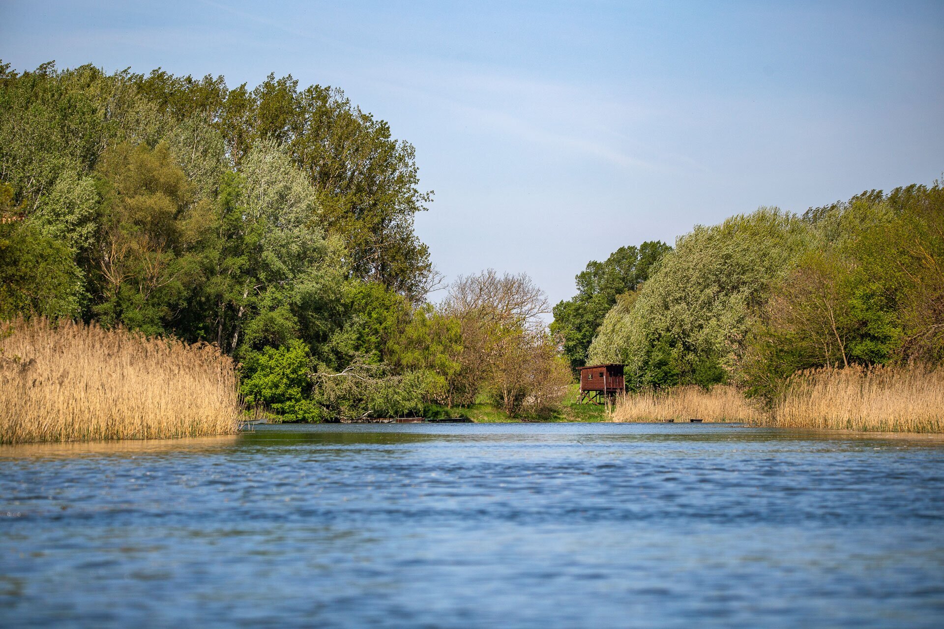 Az utolsó balkanyar előtt a Jakabi-Dunaágon, háttérben a dunaszigeti madárles