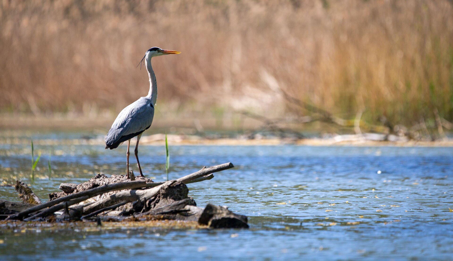 Szürke gém, aki végül úgy döntött, hogy modellt áll a repülés helyett