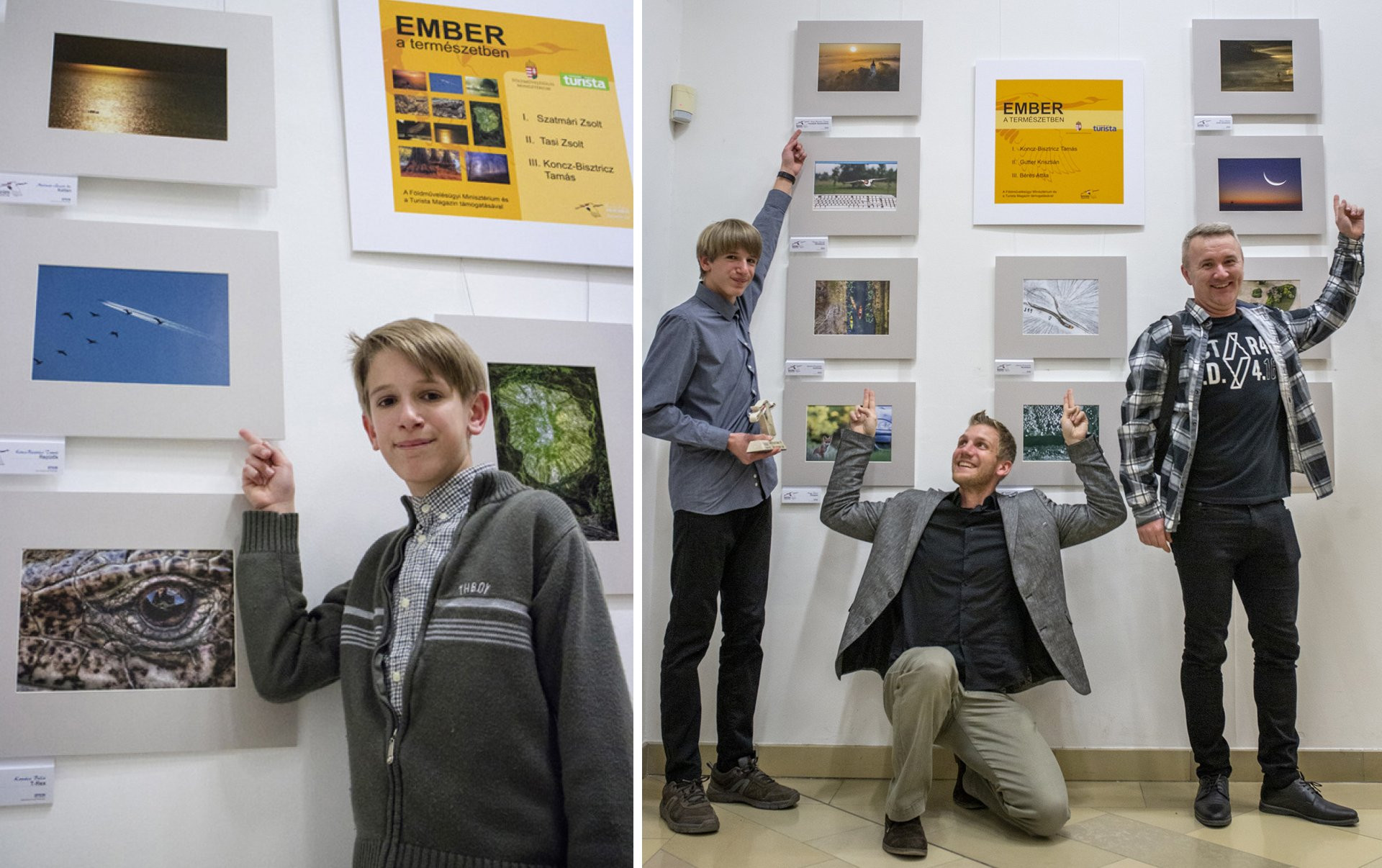 Koncz-Bisztricz Tamás a 2017-es átadón (balra) még a harmadik helynek, 2019-ben már (jobbra) az első helynek örülhetett az Ember a természetben kategóriában