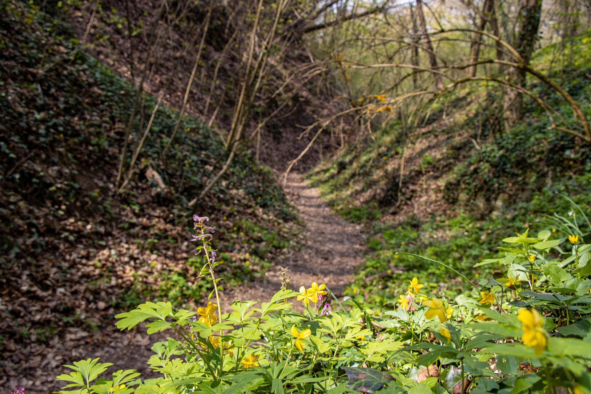Tavasszal a völgybe vezető ösvényt a kikelet színei kísérik