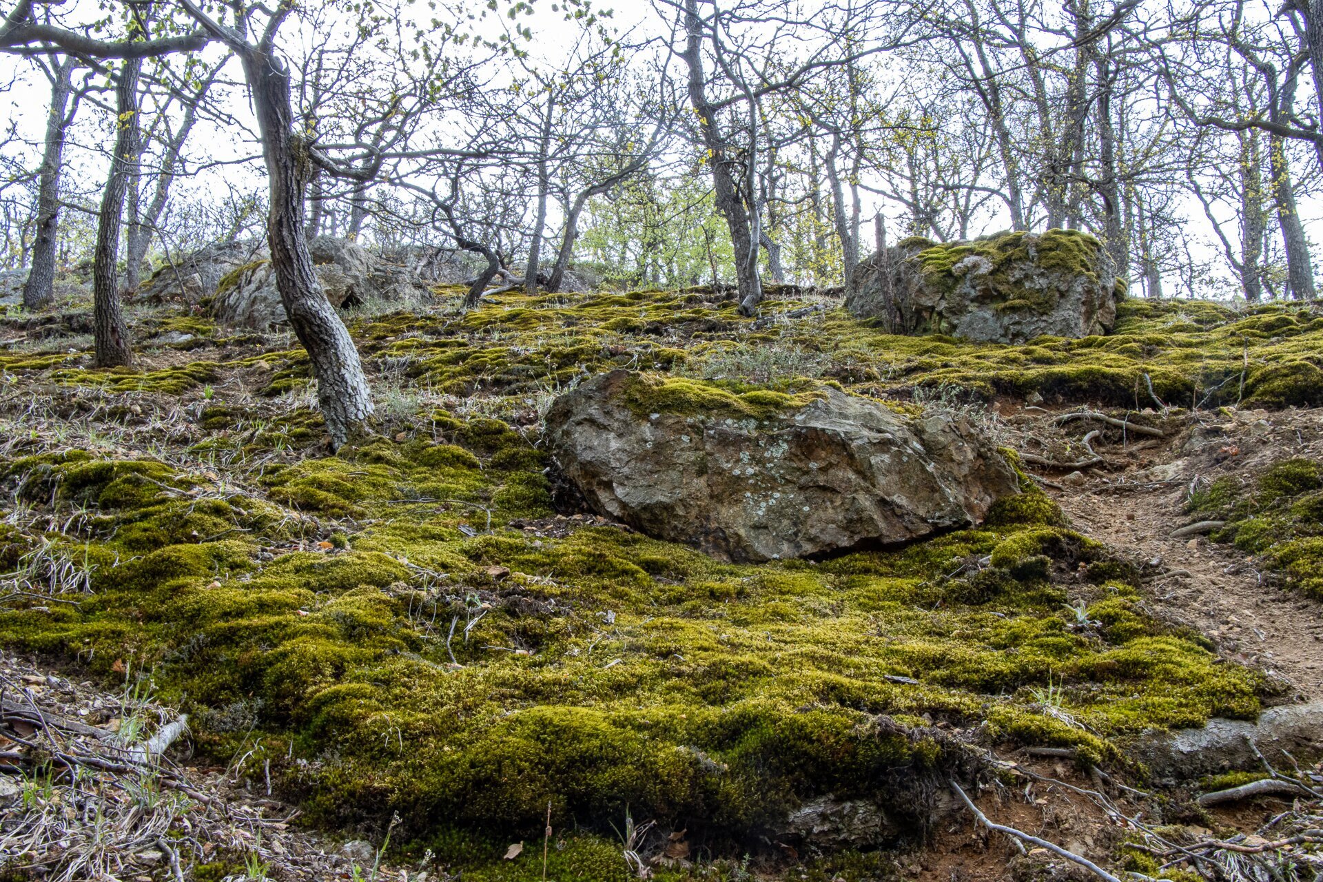 Tavasszal a sziklapadok mohás foltjait tarka virágok pettyezik