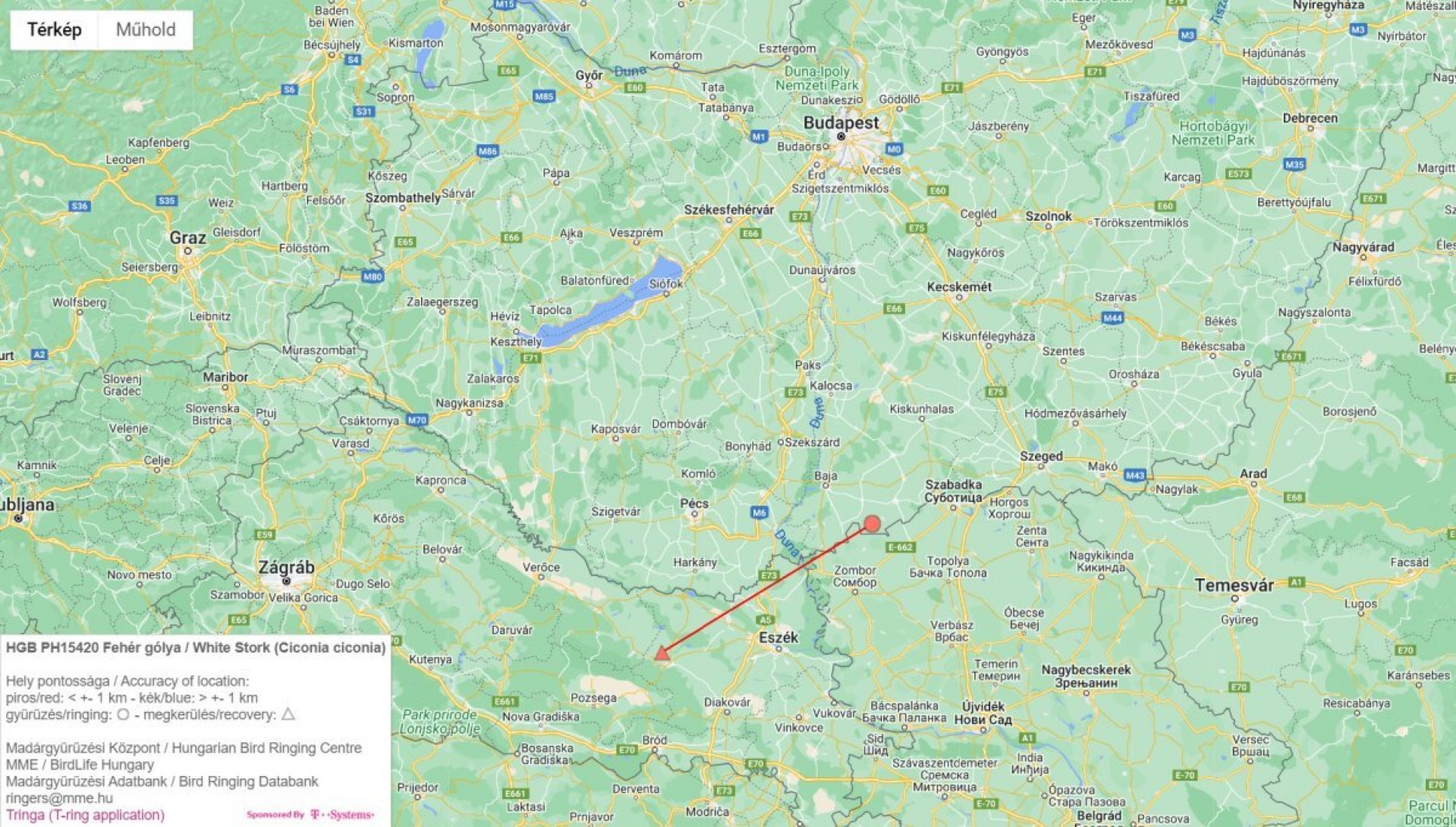 Egy horvátországi fán fészkel a nálunk gyűrűzött gólya