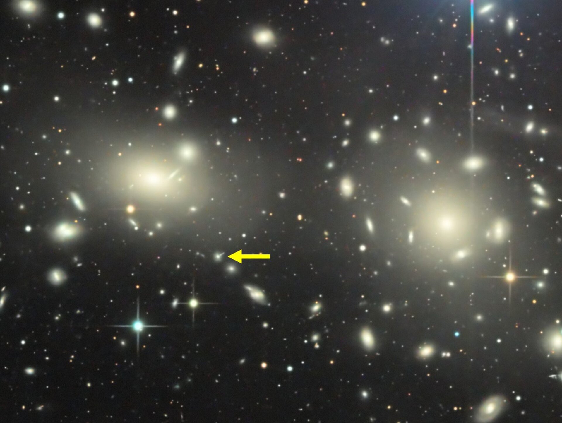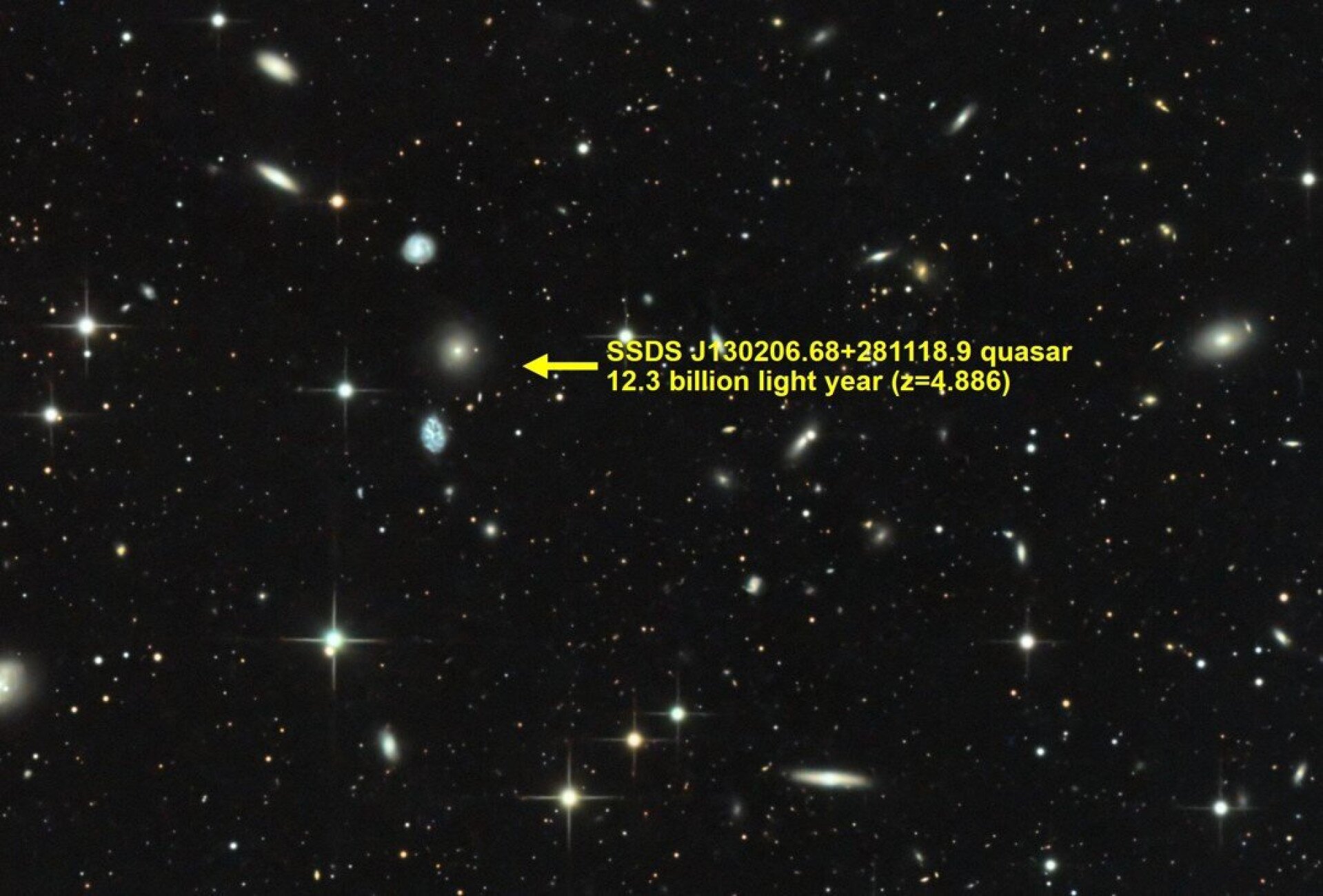 A szinte alig látható pontocska, amelyre a nyíl mutat, 12,3 milliárd fényévre van tőlünk