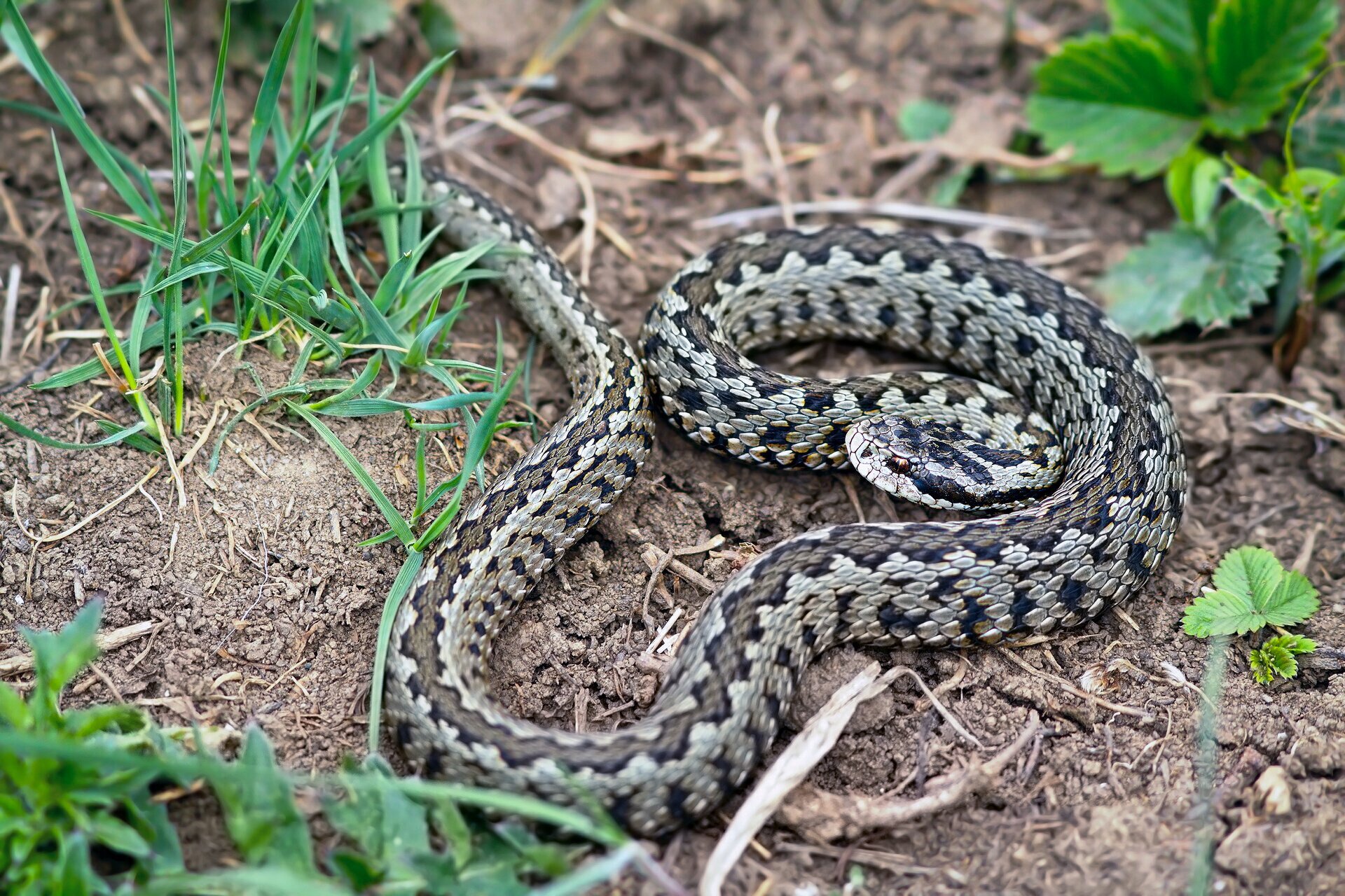 male Vipera ursinii rakosiensis on natural habitat ( hungarian meadow adder )