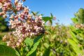 A Duna-réten is terjed az inváziós fajnak számító vaddohány vagy másnéven selyekmkóró, ami egyébként jó mézelő. Itt épp egy mediterrán tőrösdarázs kóstolgatja.