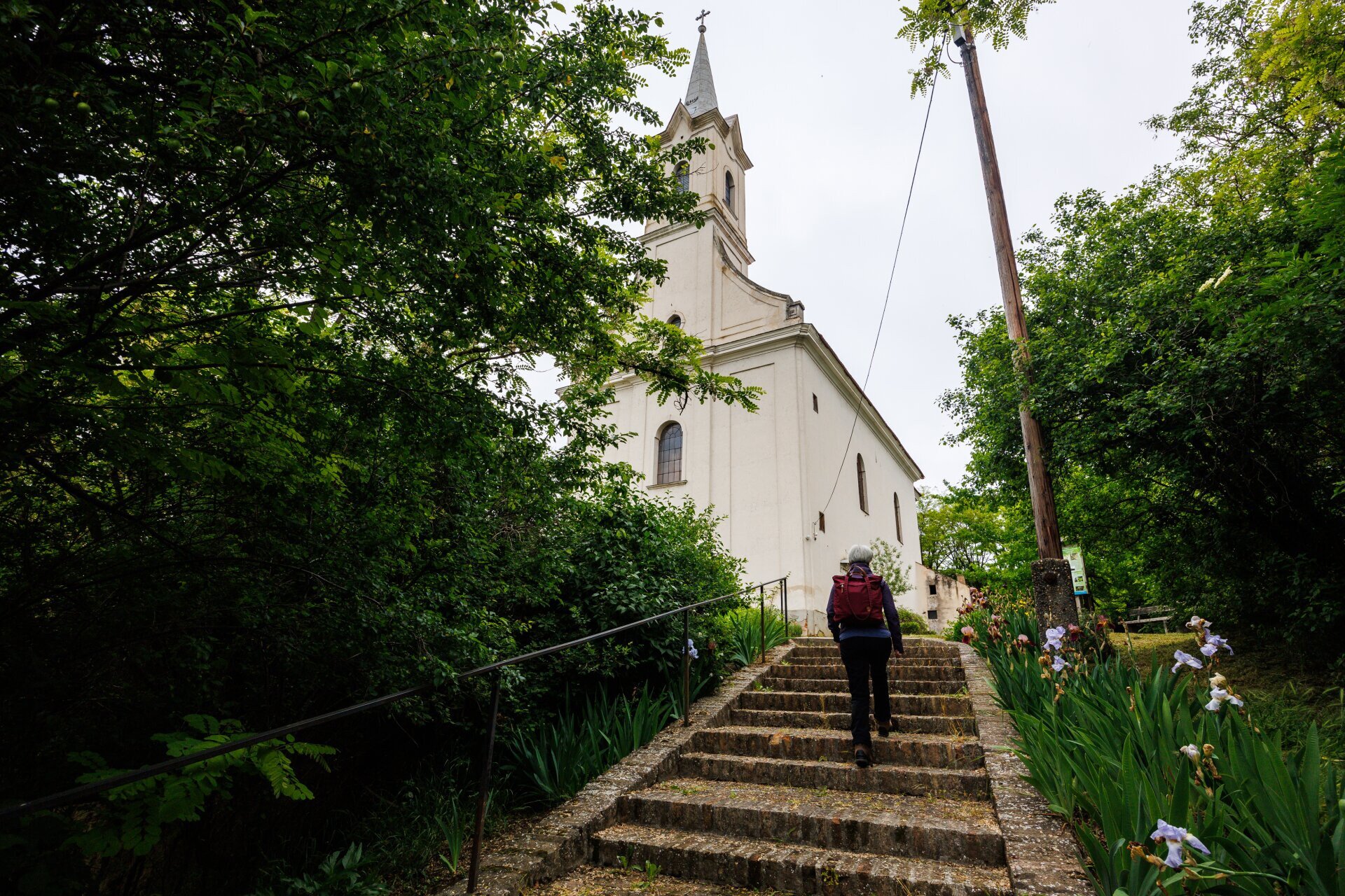Lépcső vezet fel a falu Szent György tiszteletére szentelt templomához