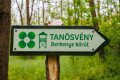 A tanösvény indítótáblája az egykori iskola épületénél, amelyben 2011-ben nyílt meg a falu Helytörténeti gyűjteménye és az Iskolatörténeti kiállítás