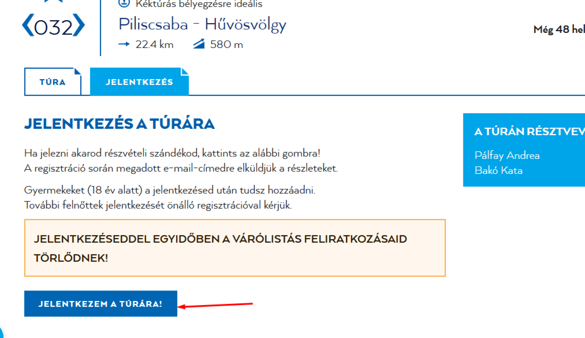 Akinek előző két évből van regisztrált profilja, annak csak jelentkezni kell a túrákra, aki még "új", az előtt egy néhány kattintásnyi profil regisztráció is áll. Belépést és a regisztrációt is a honlap jobb felső sarkában találjátok