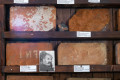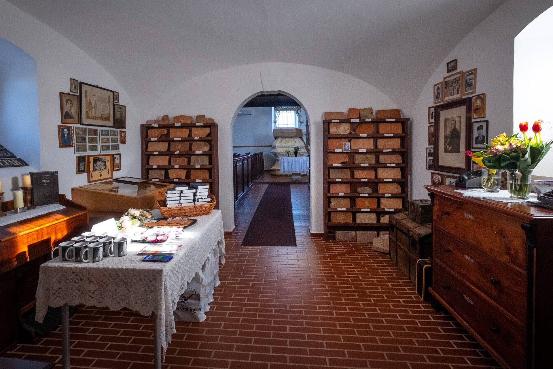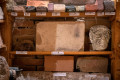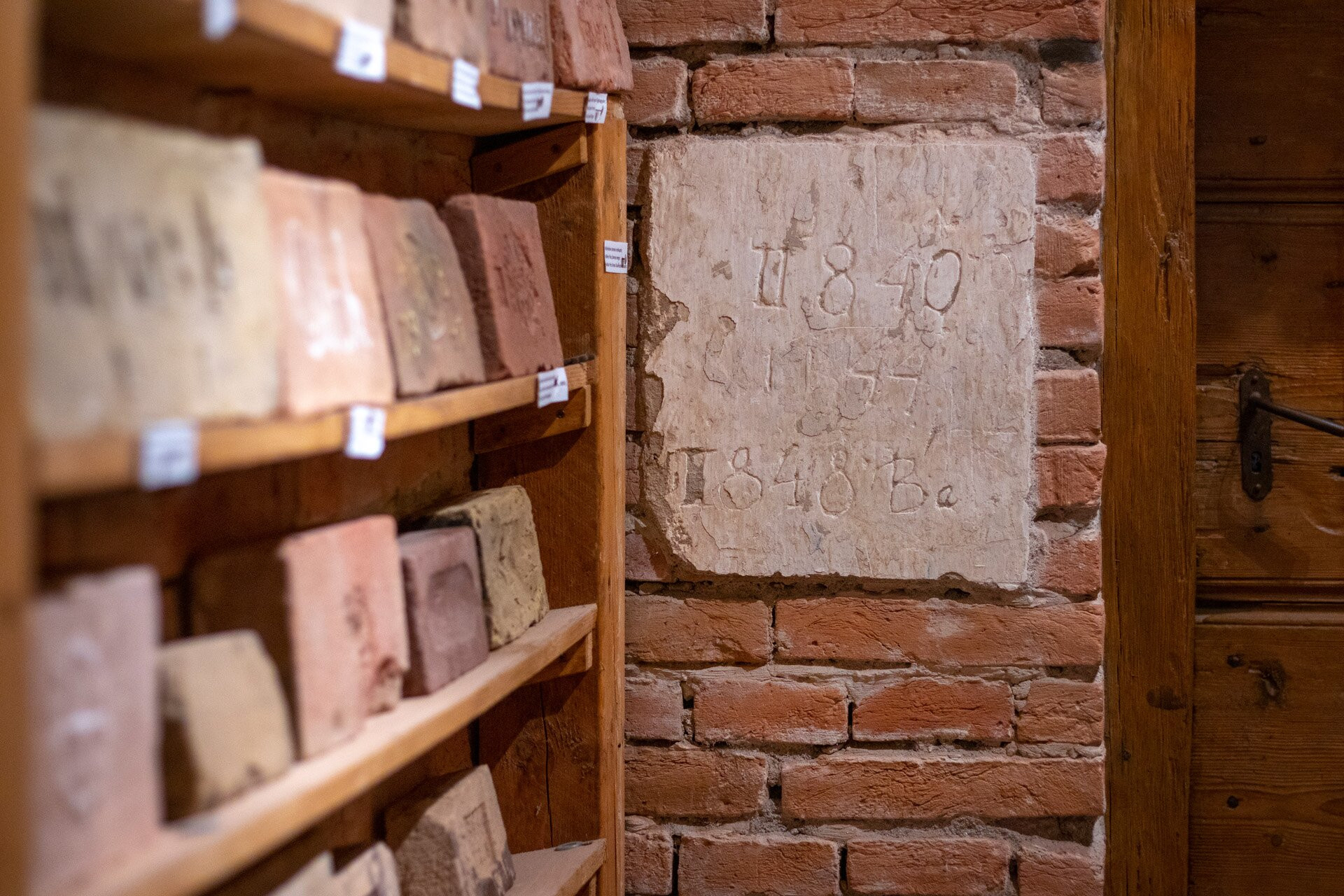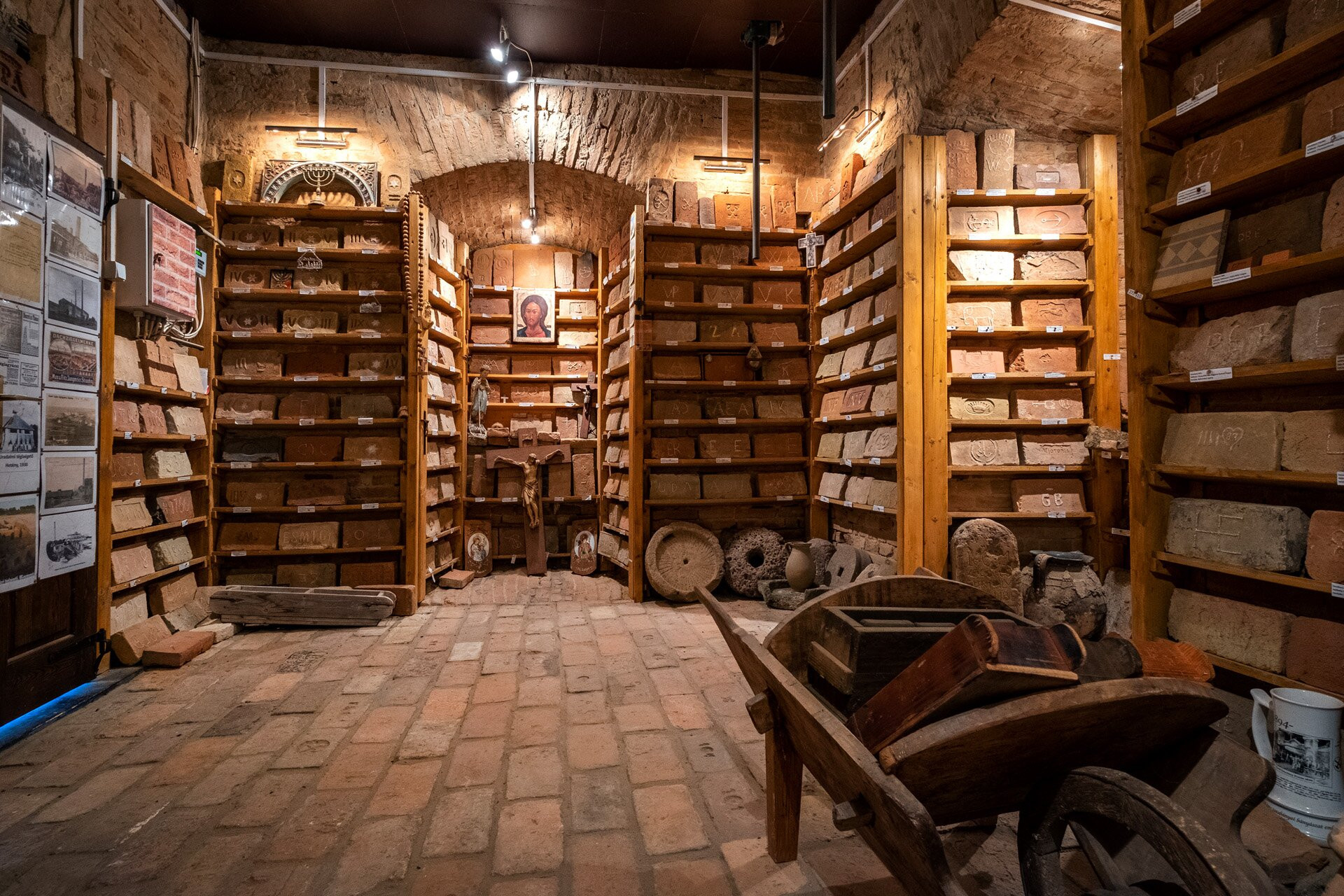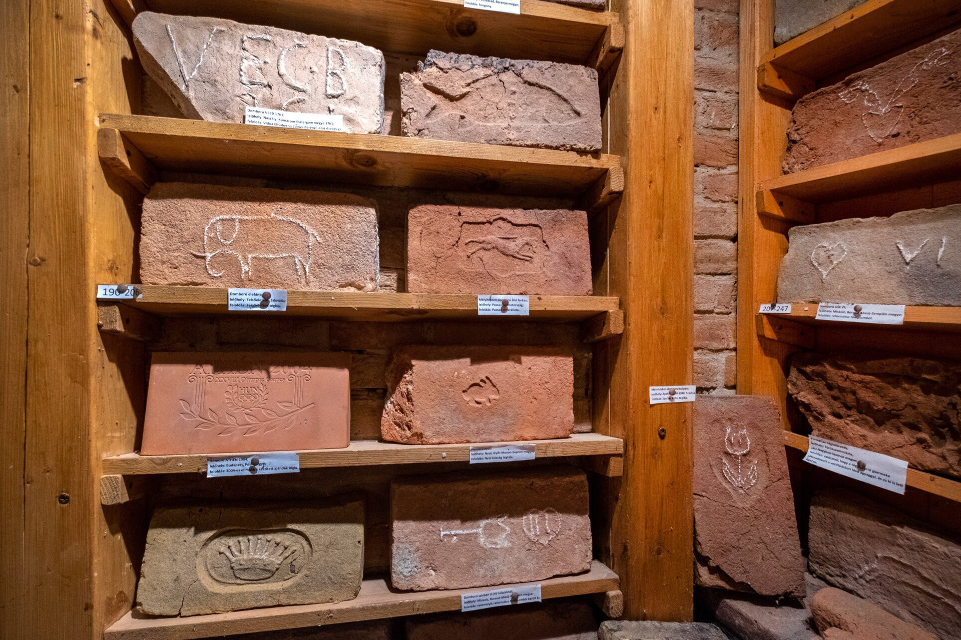 A zsidóság téglái közül az 'FI' monogrammal ellátott darabok Flamm Ignác téglái, háttérben pedig már a katolikus egyház relikviái
