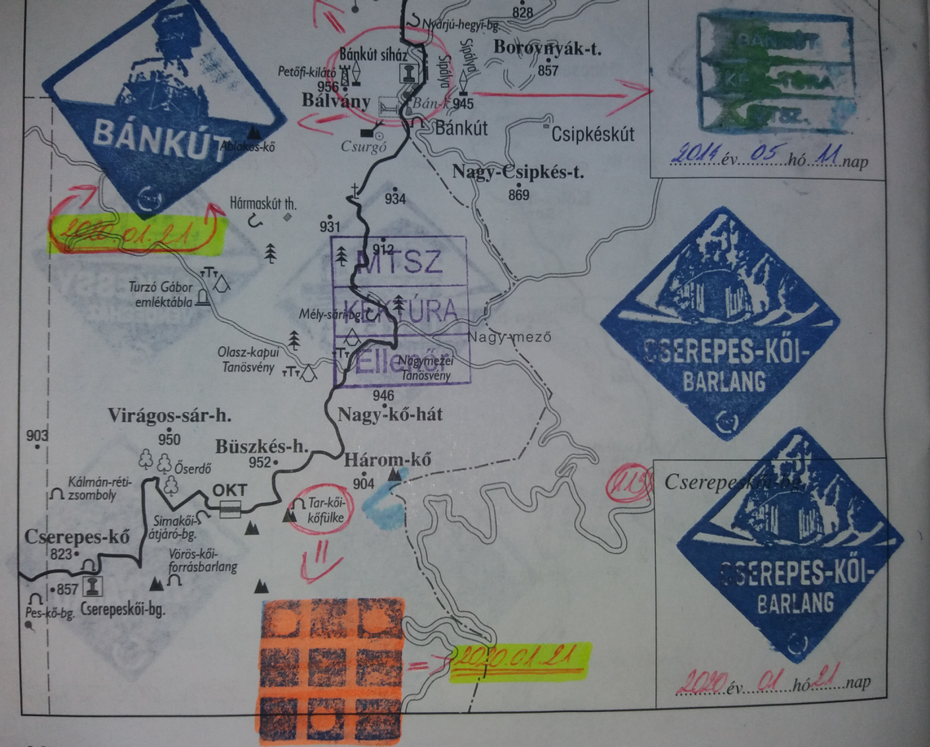 Ez egy régebbi OKT füzet, szabályos útmegszakítás igazolással Bánkúton. A színek és a nyilak segítik a bírálatot is.