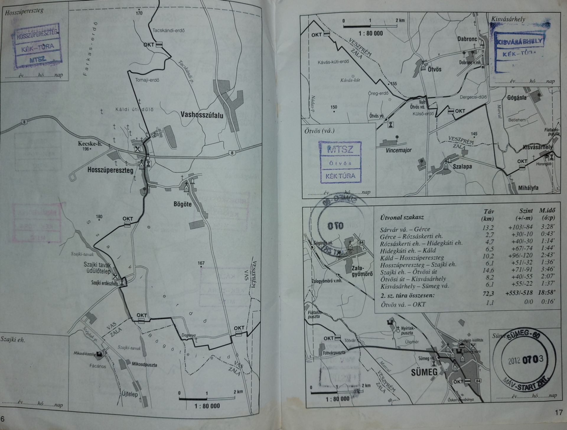 Az új (2017 után kiadott) igazolófüzetekben ennek megfelelően kell az útmegszakításokat dátummal ellátni. A képen látható lasztonyai és valkonyai példák esetében szépen áttekinthető és bírálni is sokkal gyorsabb.