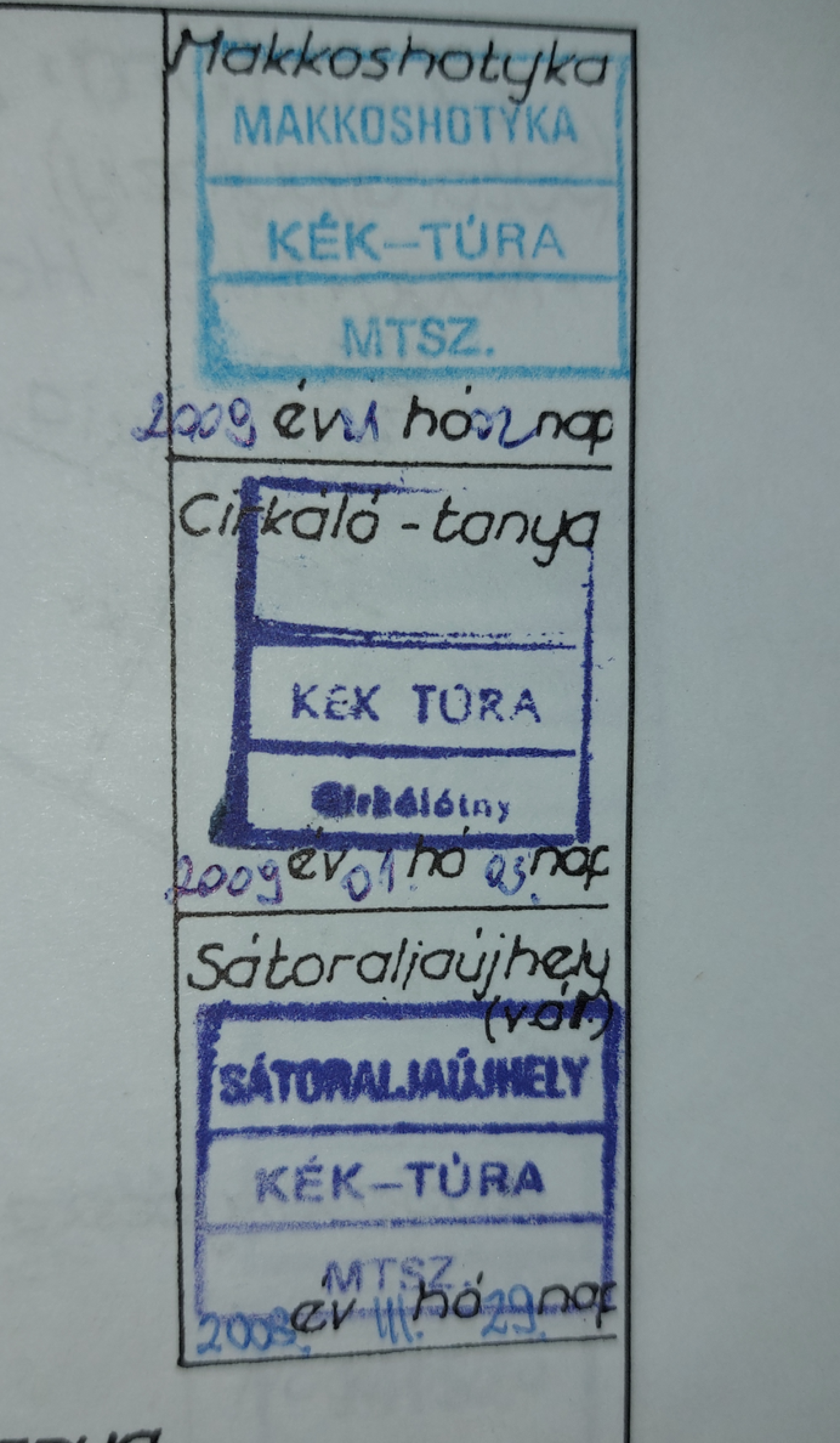 Itt a Cirkáló-tanya - Sátoraljaújhely szakasz teljesítése nem derül ki a dátumokból. Erre figyelj, mert az ellenőrök az igazolófüzetben rögzített infók alapján tudják megítélni a teljes útvonal bejárását, ami feltétele a kéktúrák teljesítésének. Ez persze lehet elírás is és nem feltétlen hagyta ki a szakaszt a túrázó.
