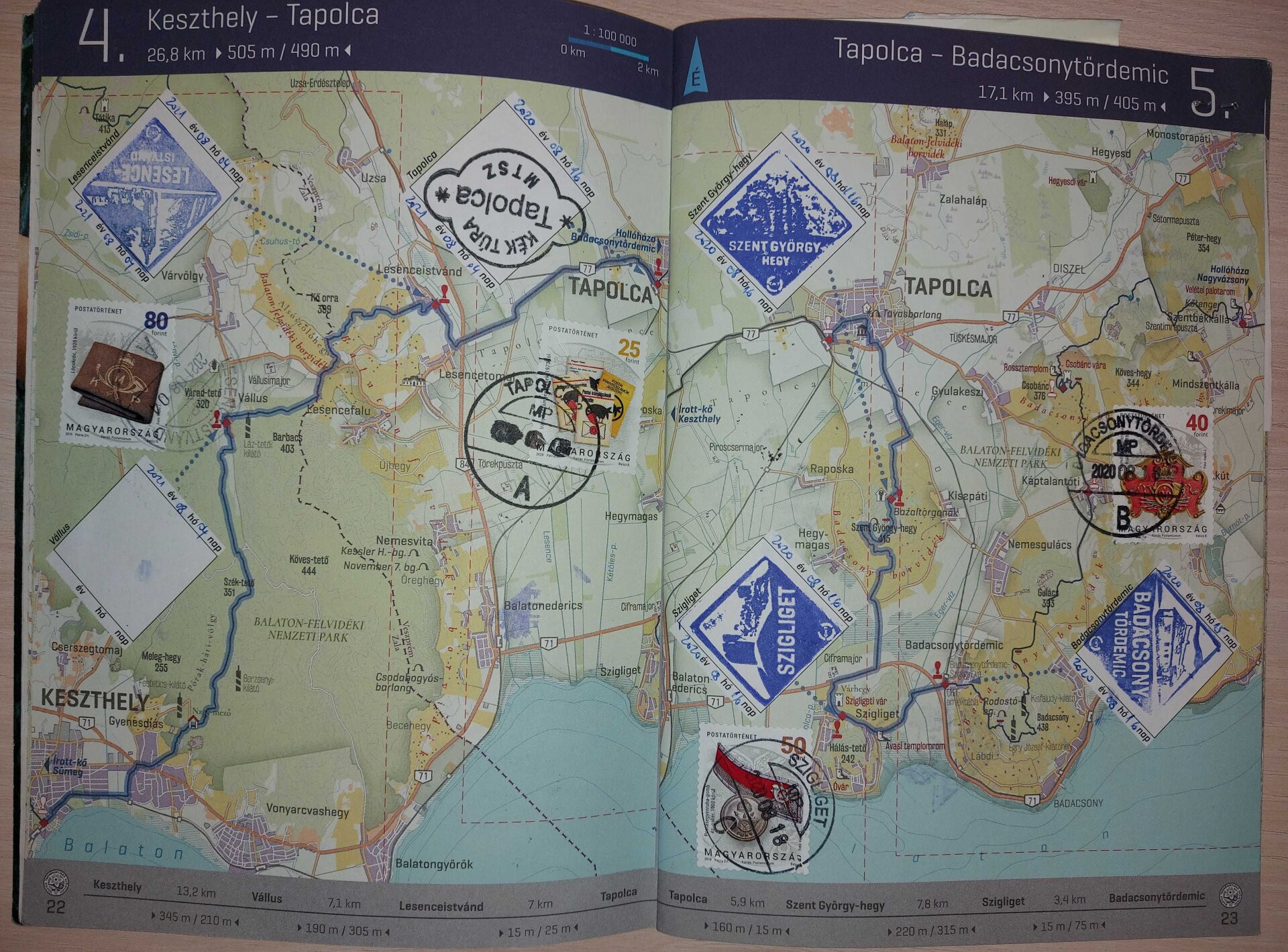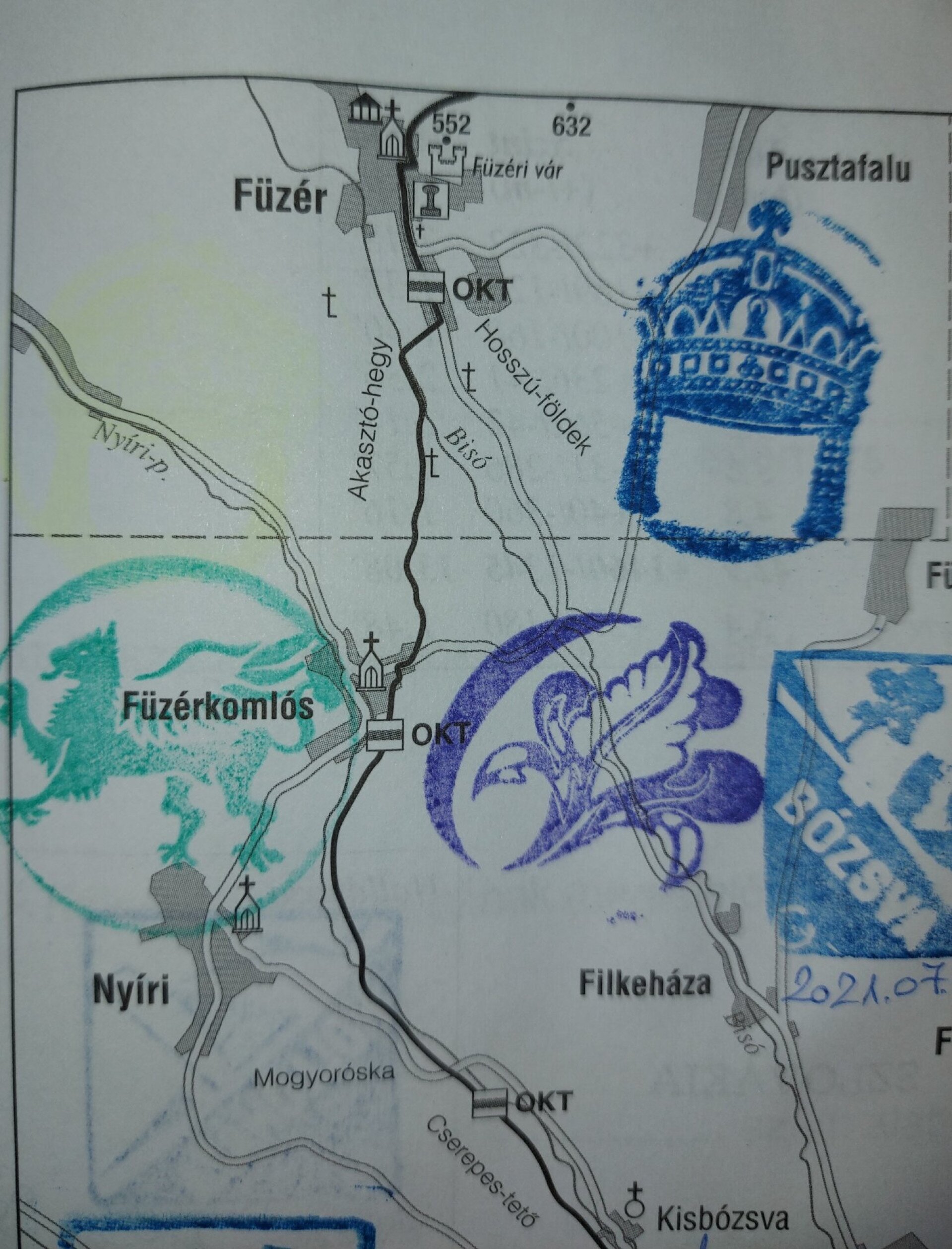 Rossz példa 2: Érdekességként is ide kerülhetett volna ez a kép a sok postai bélyegzéssel, de így, a vállusi bélyegzés nélkül ez sajnos nem elfogadható. Ha a füzet mellé csatolunk egy, a helyszínt és a túrázót is ábrázoló képet, akkor persze nincs gond.