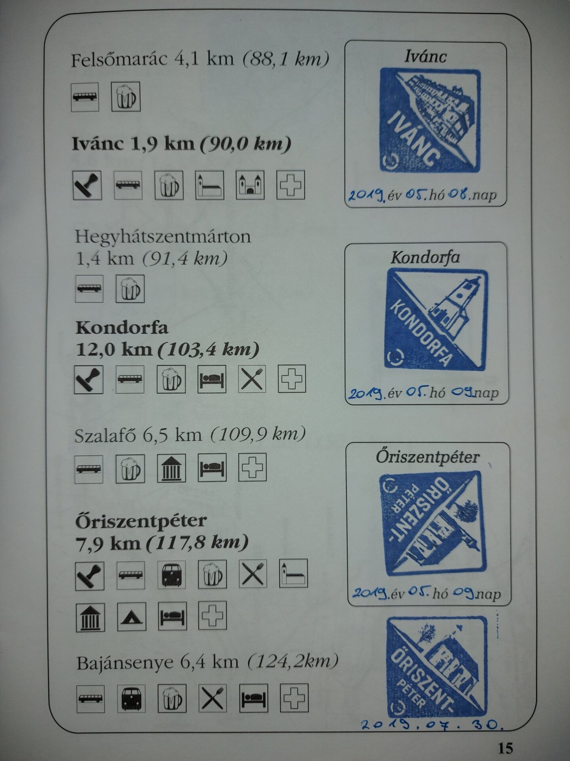 Jó példa 1: Ma is használható a régebbi típusú Rockenbauer Pál Dél-dunántúli Kéktúra igazolófüzet, de abban úgy kell az útmegszakítást igazolni, mint itt látható Őriszentpéteren: tehát bélyegzés a kiszálláskor és a folytatáskor is, mindkettőnél egy-egy dátummal. És persze a mintaszerűen szép bélyegzések mellett sem lehet szó nélkül elmenni.