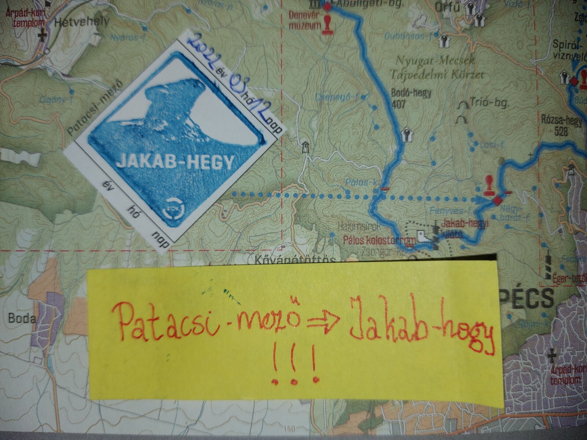 Jó példa 1: Helyesen beütött bélyegzés, pedig abban az igazolófüzetben még nem is volt helye, de utánanézett, és már tudott róla, hogy elvárt bélyegzés a csobánci is.