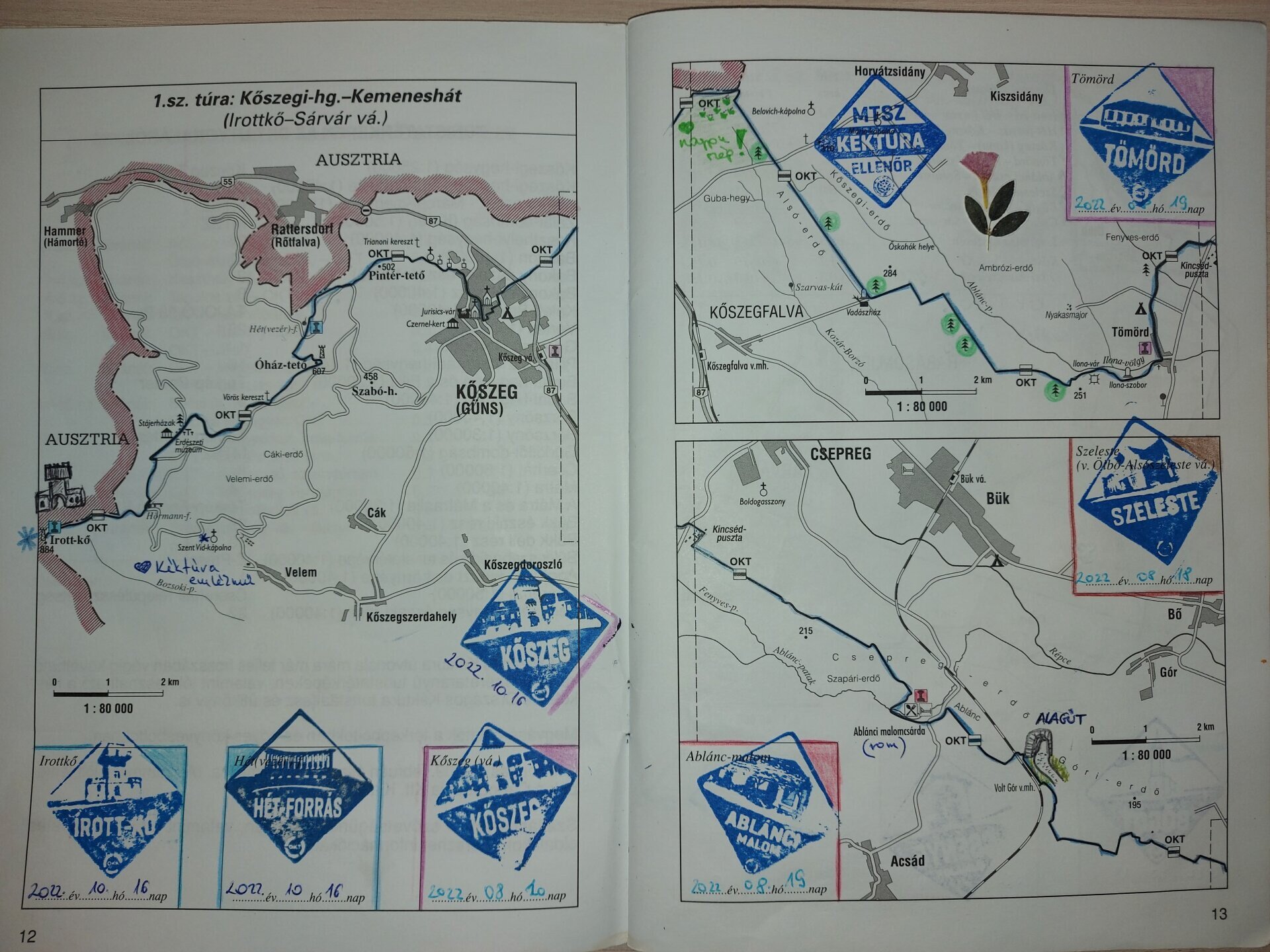 Jó példa 1: A gyönyörű bélyegzések mellett érdemes megfigyelni, hogyan kell egy régi típusú füzeteben az útmegszakítást igazolni: két bélyegzés, két dátum.