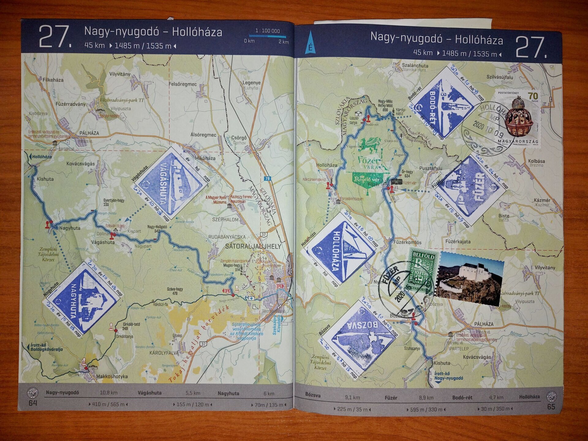 Jó példa 1: Jó példa, bár érdekes is. A bélyegzések mellett postai bélyeget és persze postai bélyegzéseket is tartalmazó füzet. A füzéri posta füzéri bélyege nagyon passzol ide.