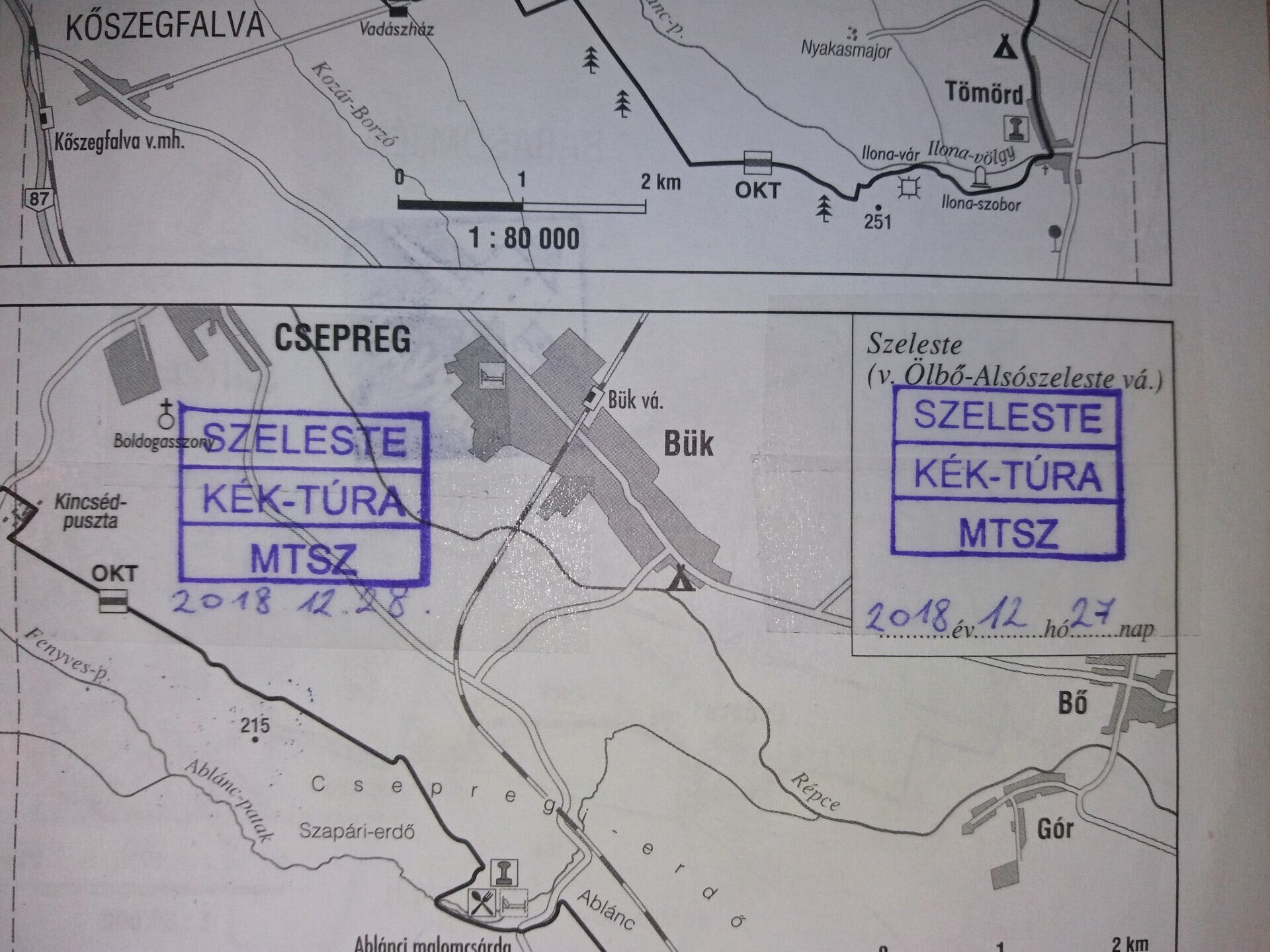 Jó példa 1: Nem a legszebb példa, sajnos a bélyegzések minősége is hagy kívánnivalót maga után, no meg az elmosódott ceruzás jegyzetek se javítanak a képen, de ez ettől még egy szabályos teljesítés, galyatetői megszakítással.