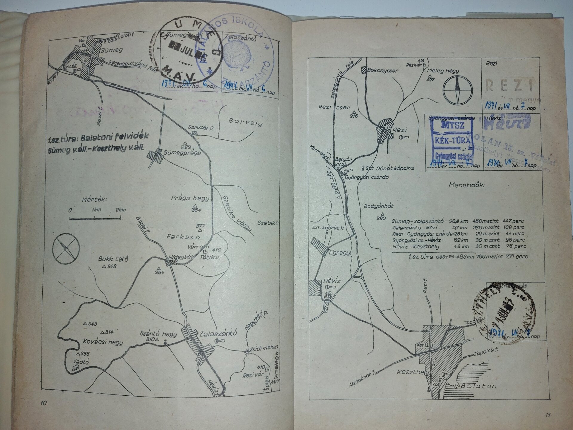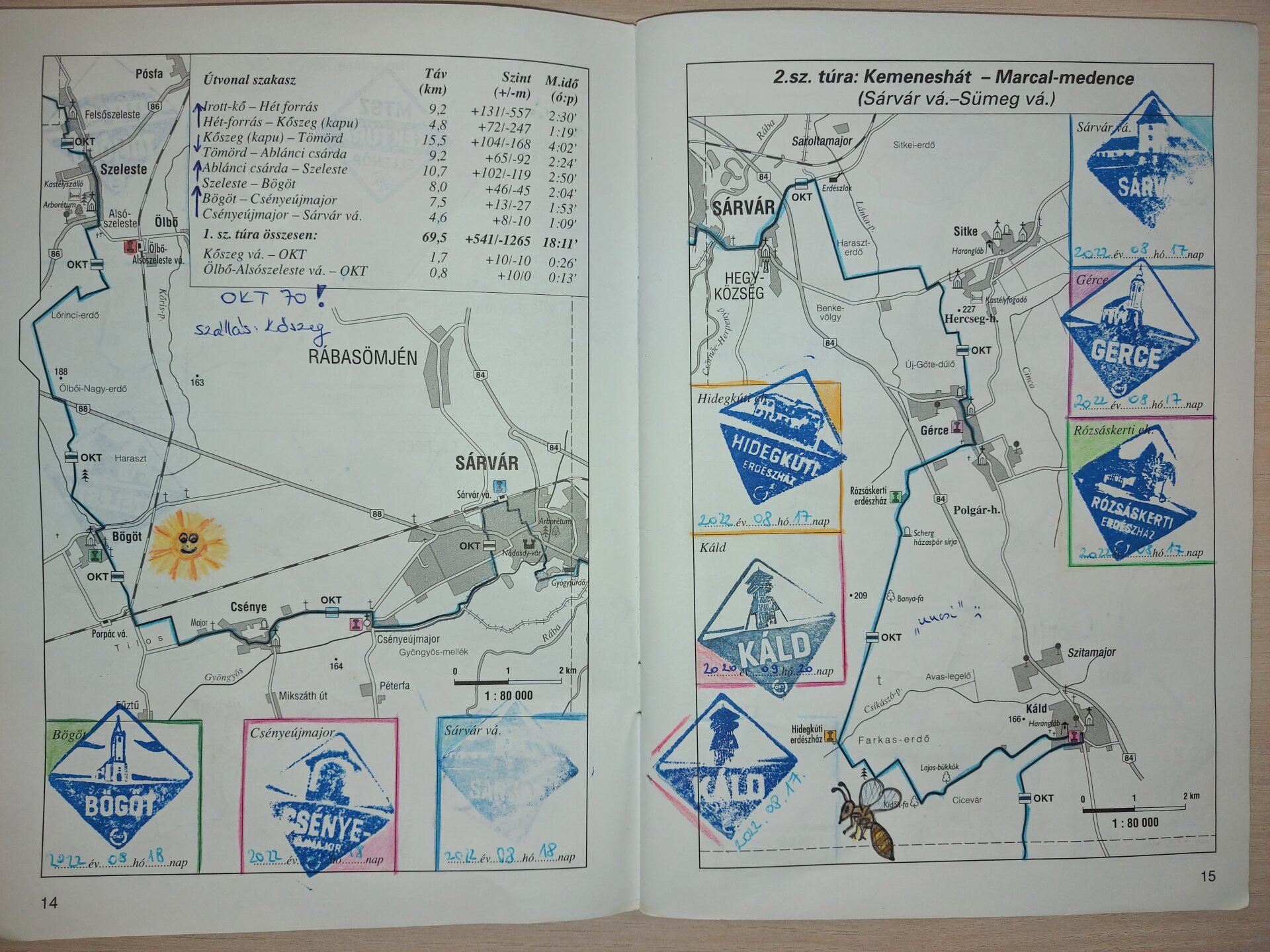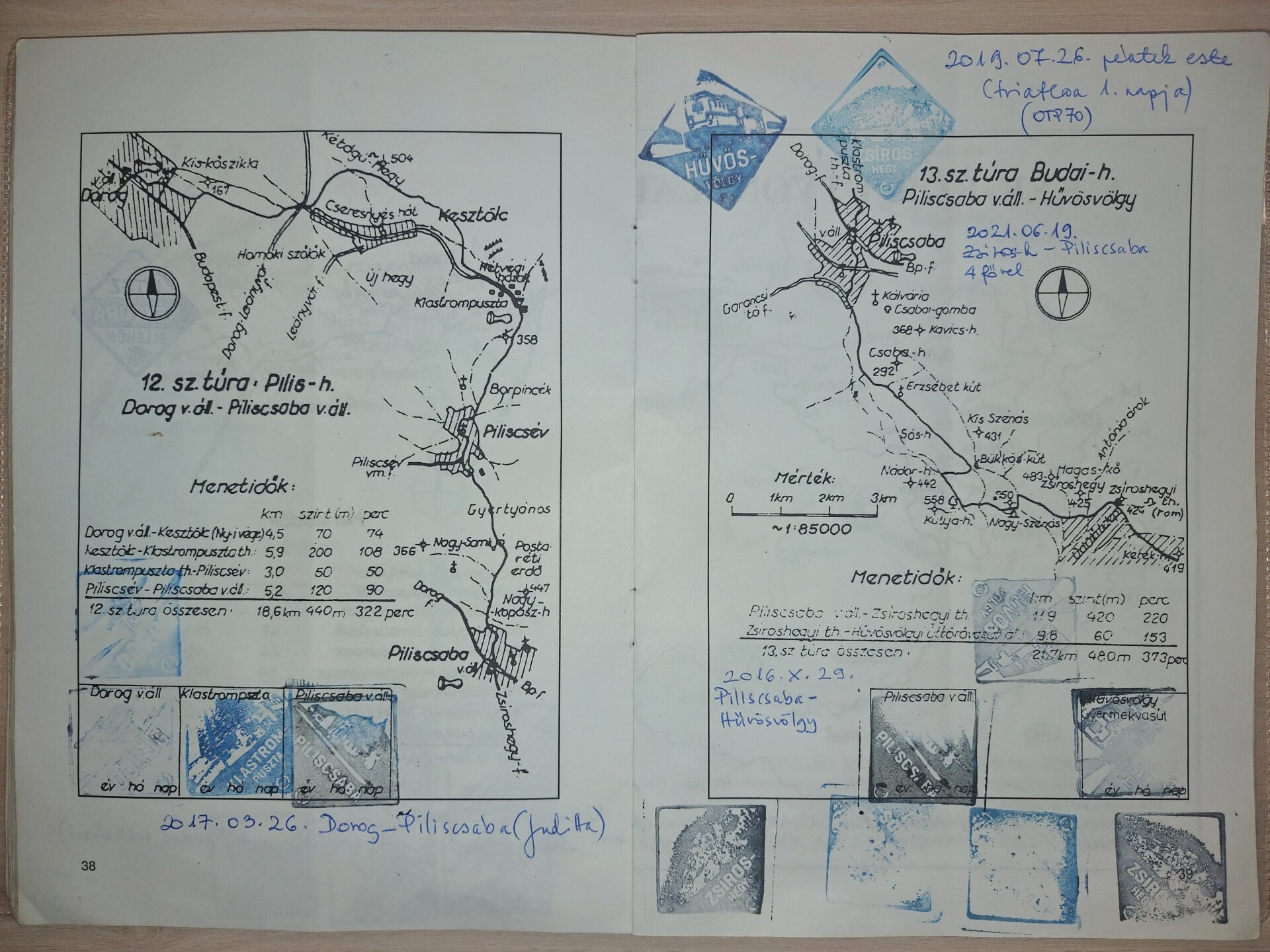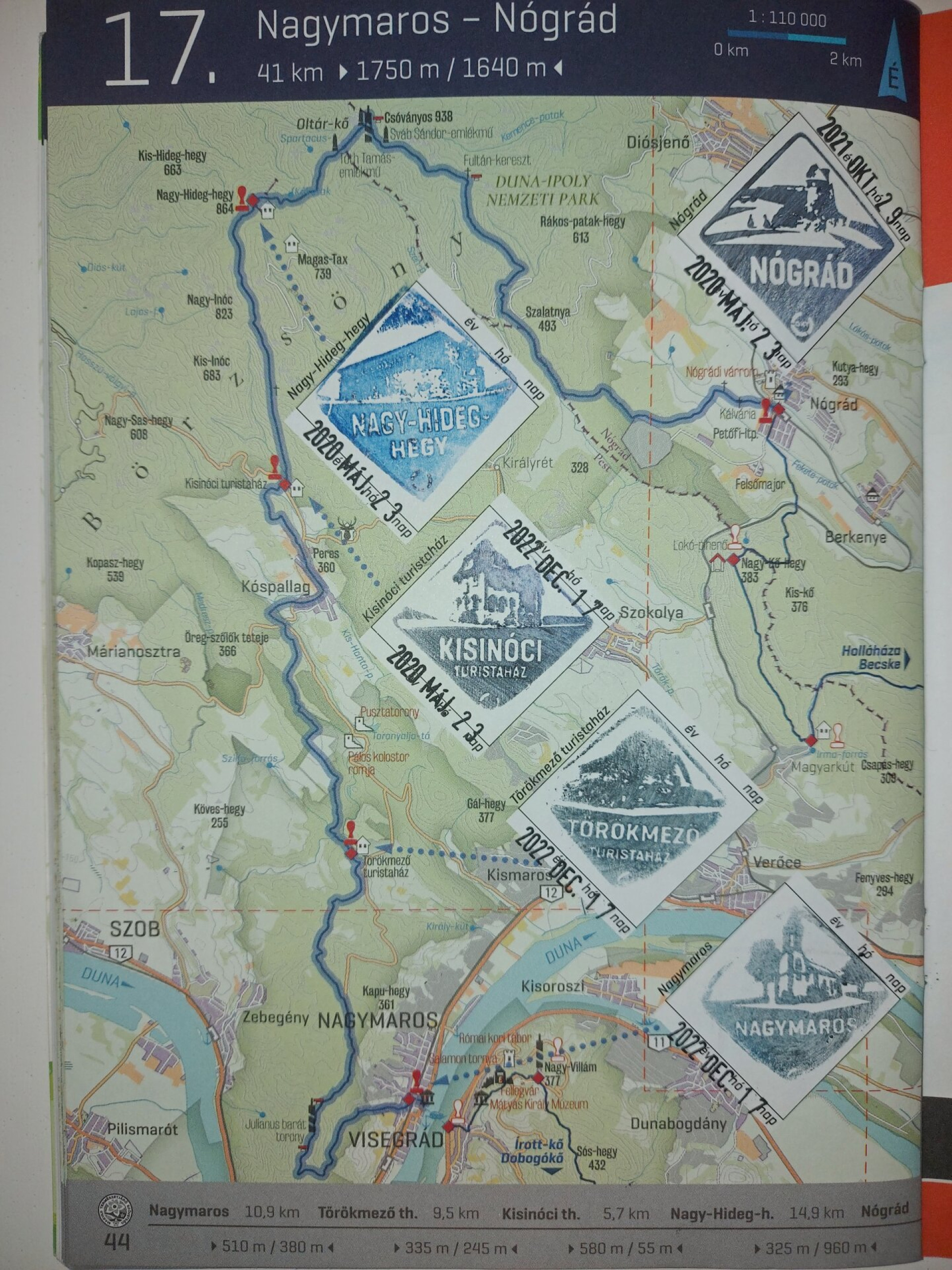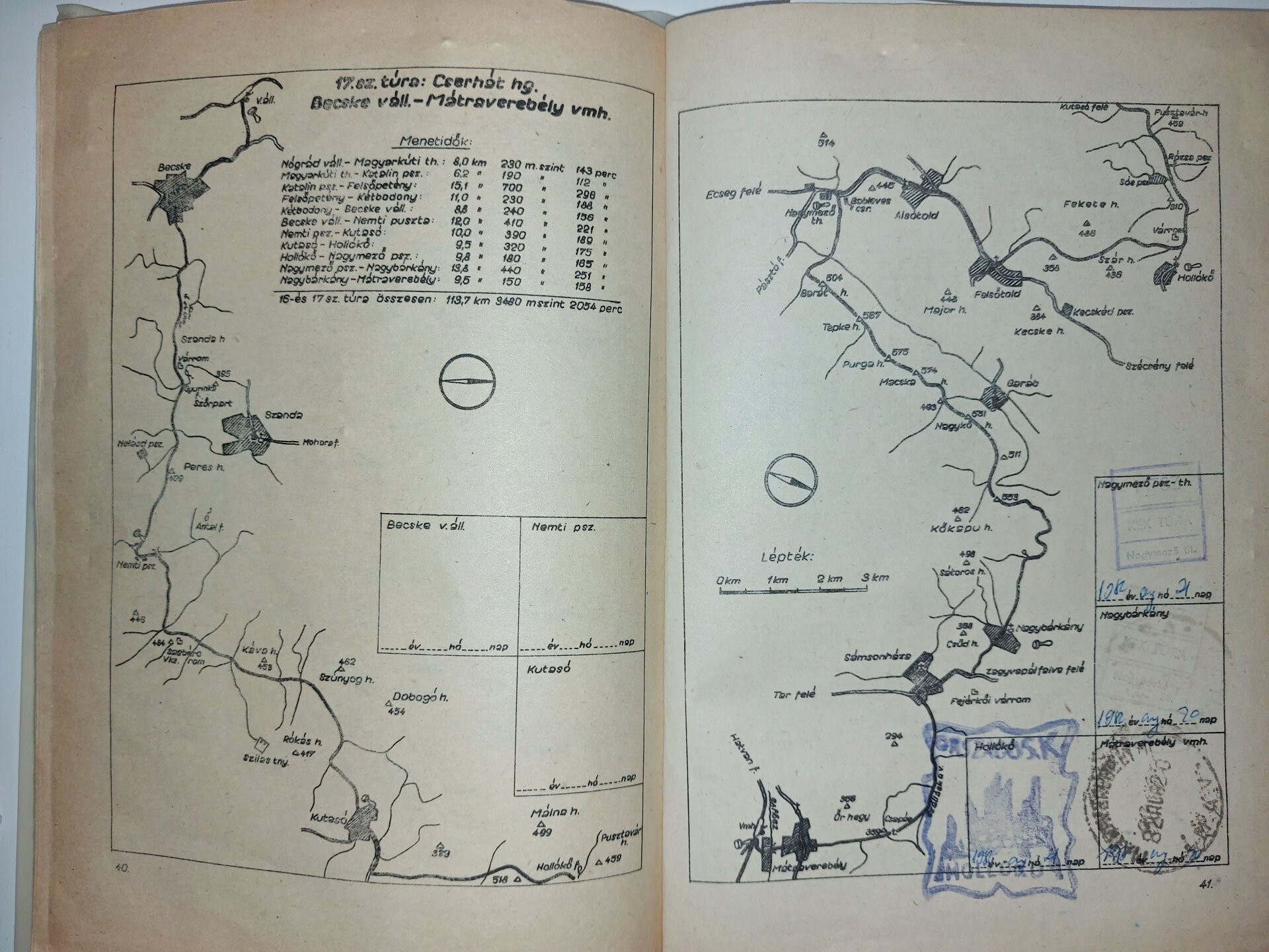 Érdekes példa 1: A bal oldalon lévő bélyegzők hiányoznak, amelyek közül Kutasó és Nemti psz. már az 1982-es bejáráskor sem léteztek, az útvonal 1979-ben változott meg Nógrádsipek-Cserhátsurány felé. Sőt, a becskei vasútállomás is akkoriban szűnt meg. Ezeken tehát már nem kellett bélyegezni, de érdemes megnézni az akkori útvonalat a térképen.