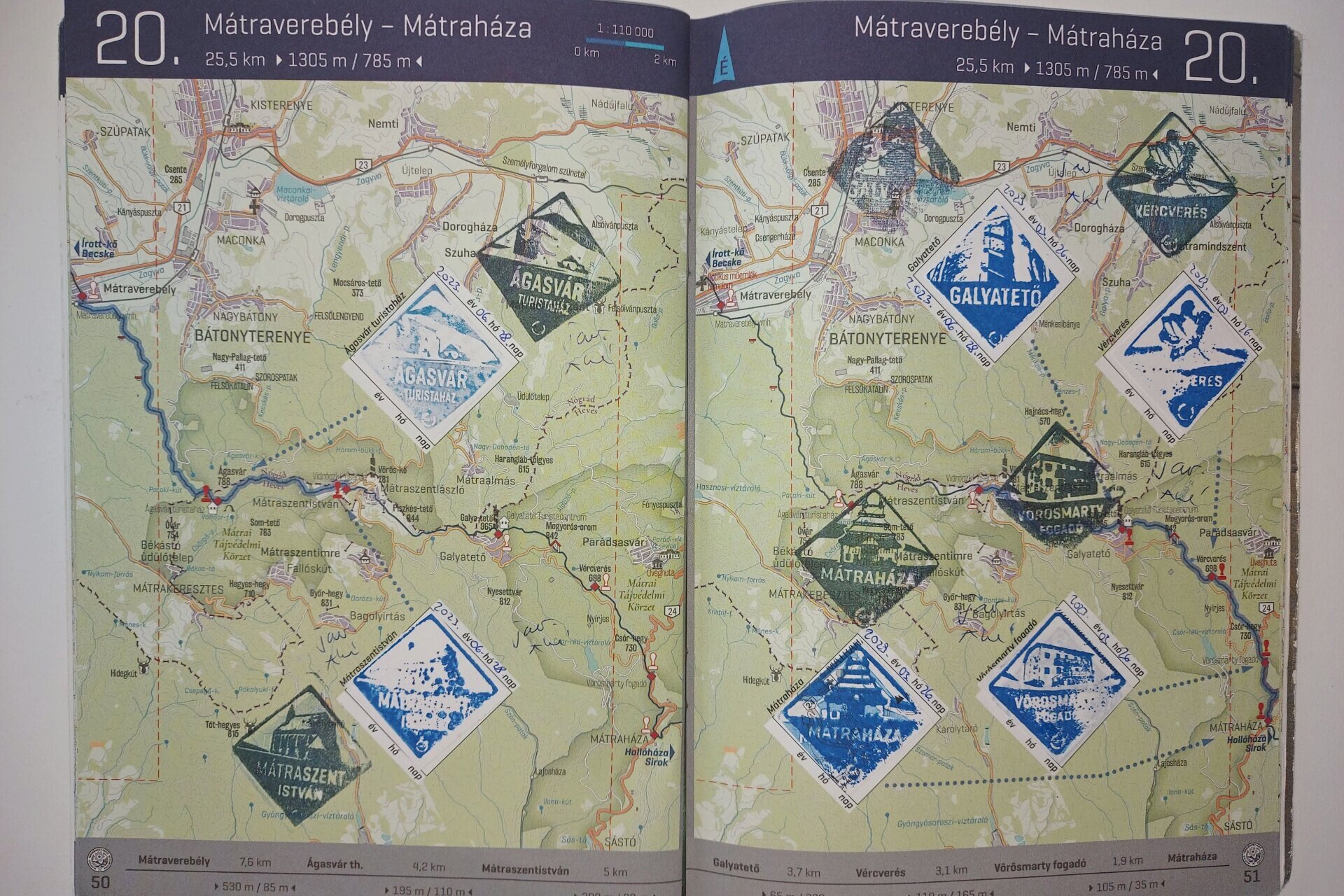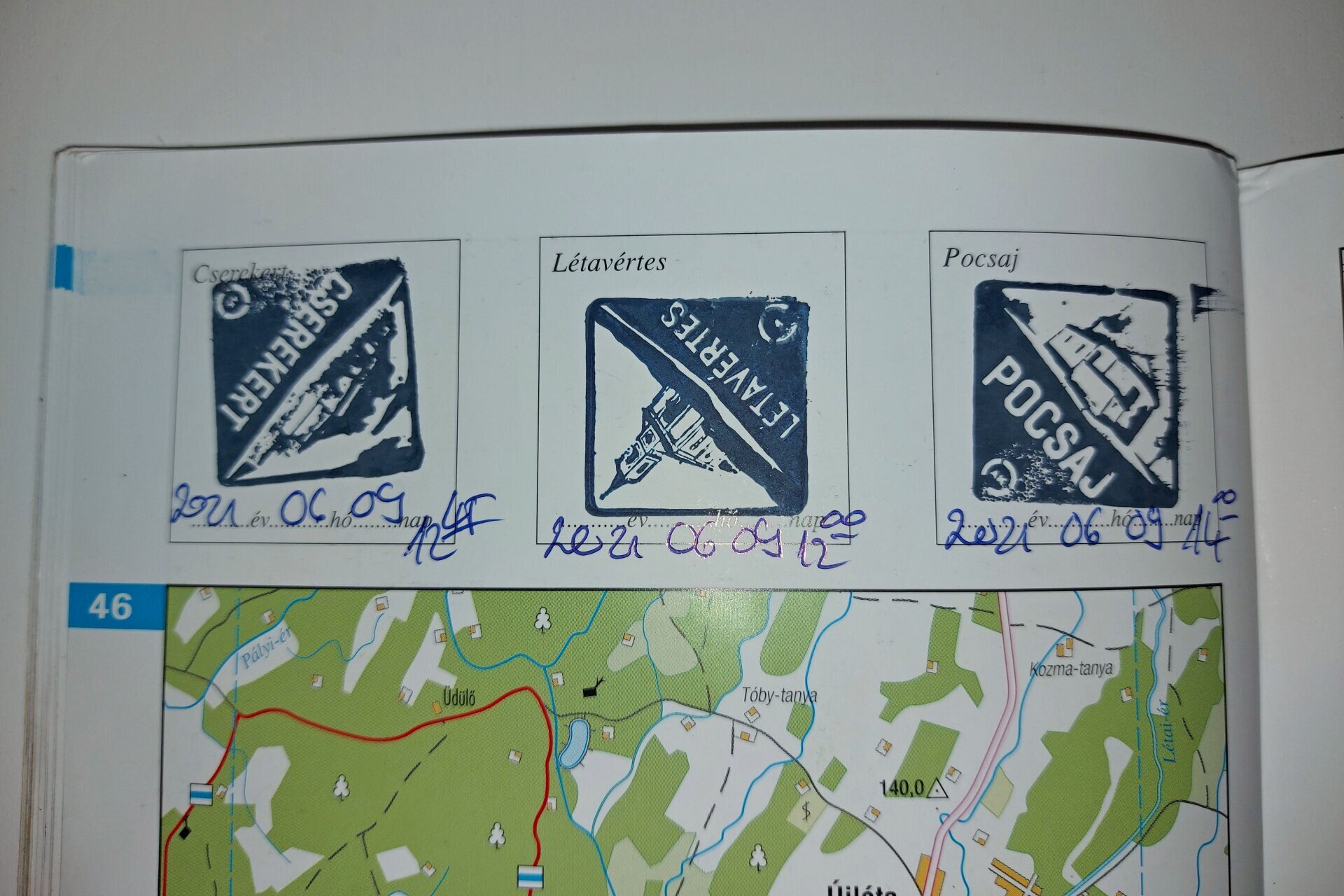 Jó példa 1: Ez a régebbi AK füzet azért került ide, mert ezen a lapon pl. a bélyegzési helyek nincsenek sorban (helyesen Pocsaj - Cserekert - Létavértes lenne a sorrend). Az igazolásokkal semmi baj, csak ezzel szerettem volna felhívni a figyelmet arra, hogy figyeljünk a bélyegzések sorrendjére, nehogy egy elnézett (helyesnek hitt) sorrend miatt maradjon ki egy bélyegzés, mert azért bizony vissza kell menni.