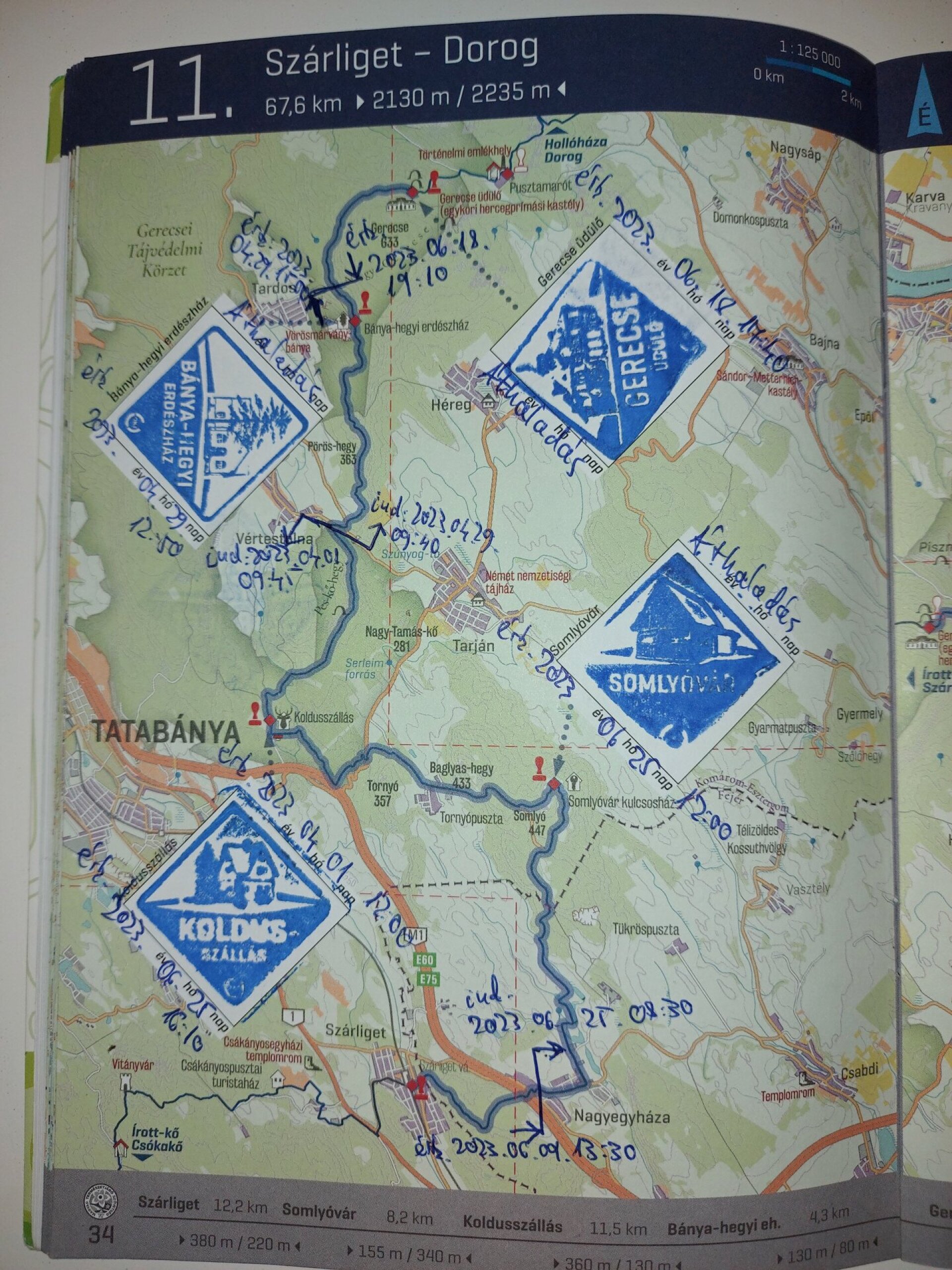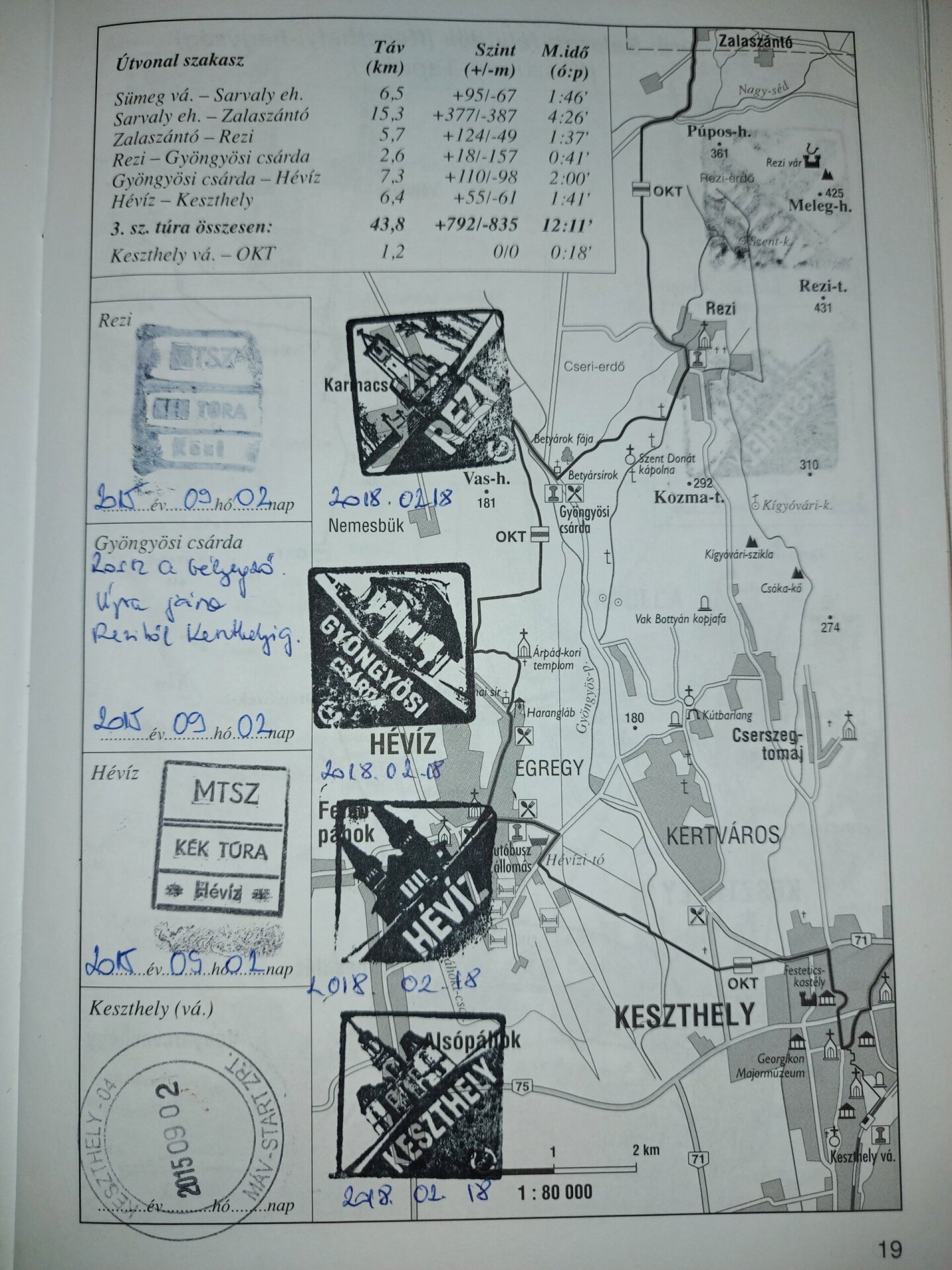 Érdekes példa 2: Előfordul, hogy egy füzetnek elég nehéz sora van az utunk során. Ez is erről tanúskodik. Érdemes azért jobban vigyázni rá, mert ha sérülnek az igazolások, akkor abból könnyen lehet némi ismétlés a vége, bár kéktúrázni mindig jó, újból is.